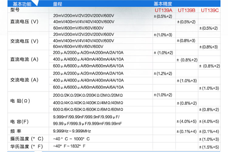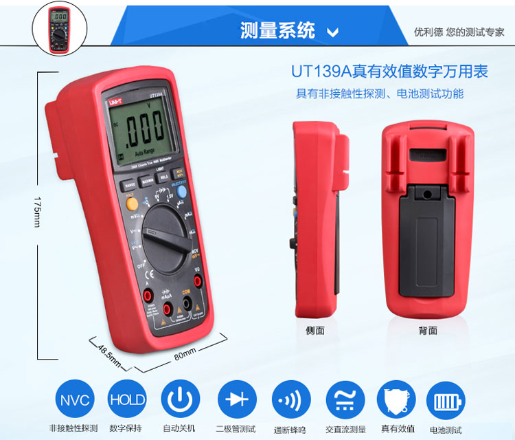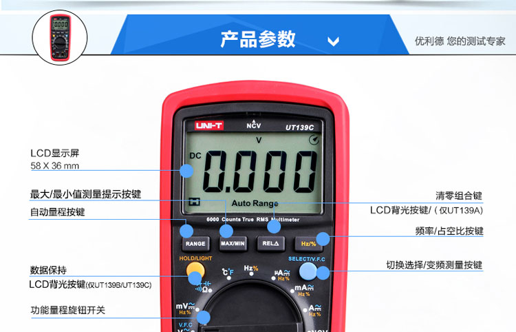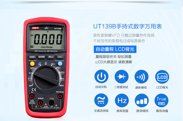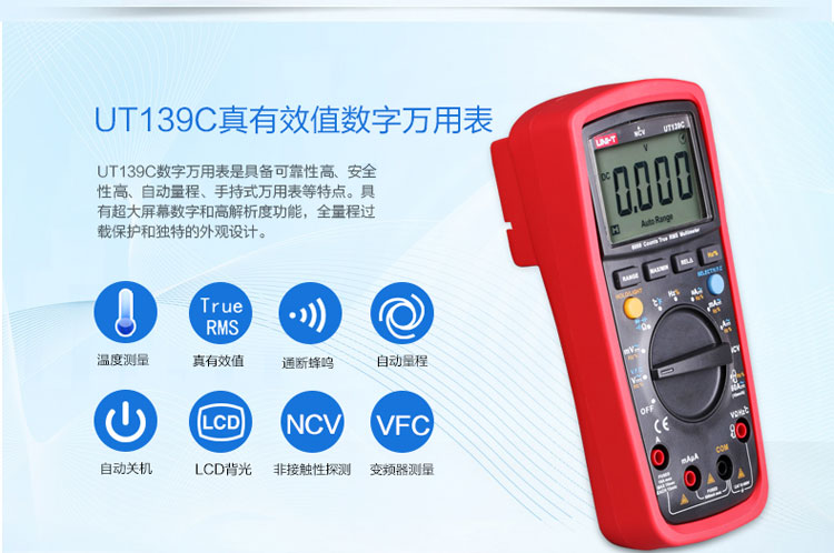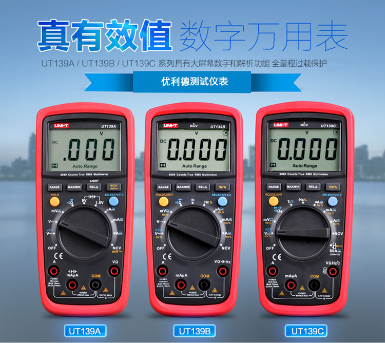 优利德万用表数字电表防烧数显表背光防烧万用表数字UT139A/B/C