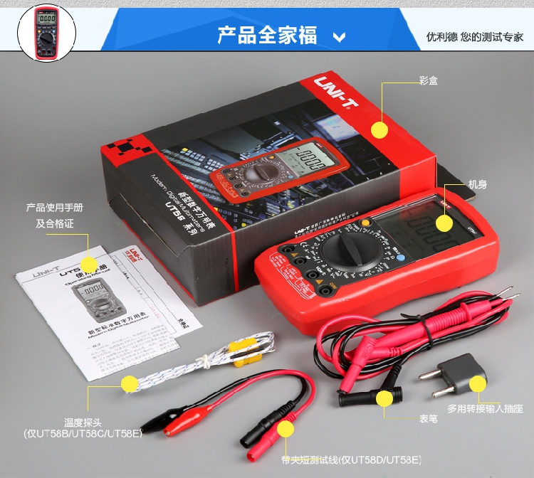 优利德数字万用表UT58A/B/C/D/E四位半高精度电工维修表
