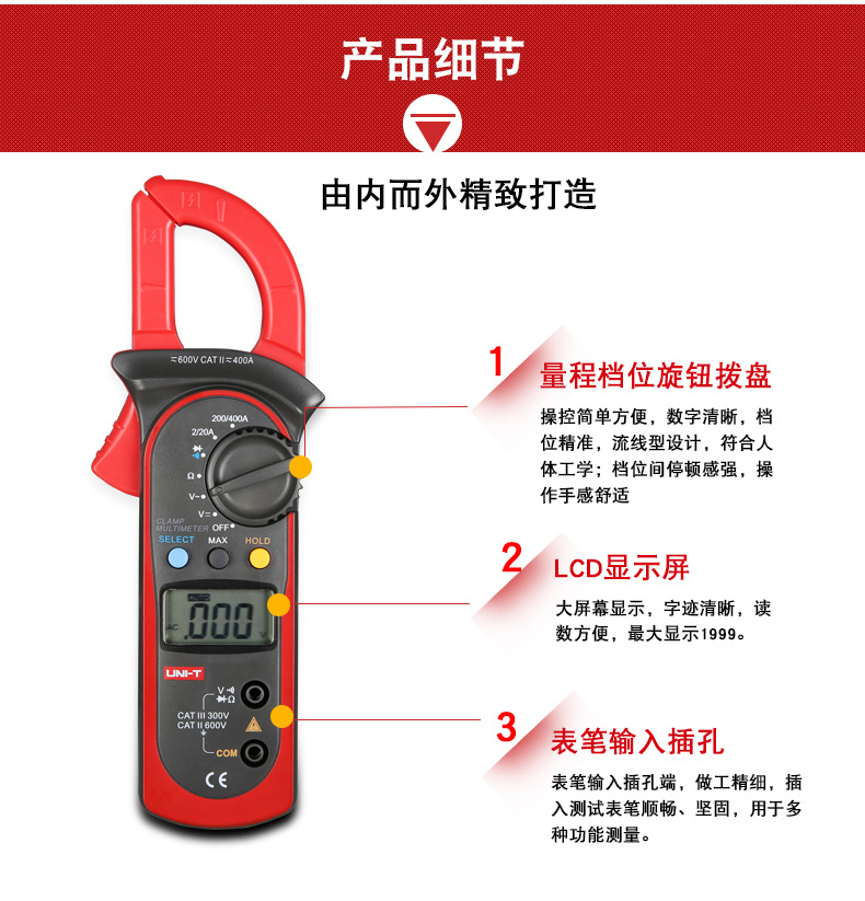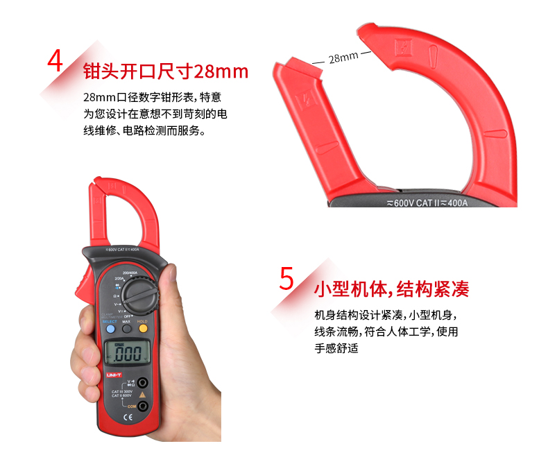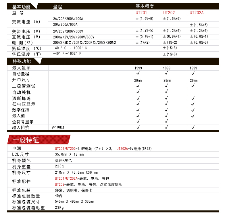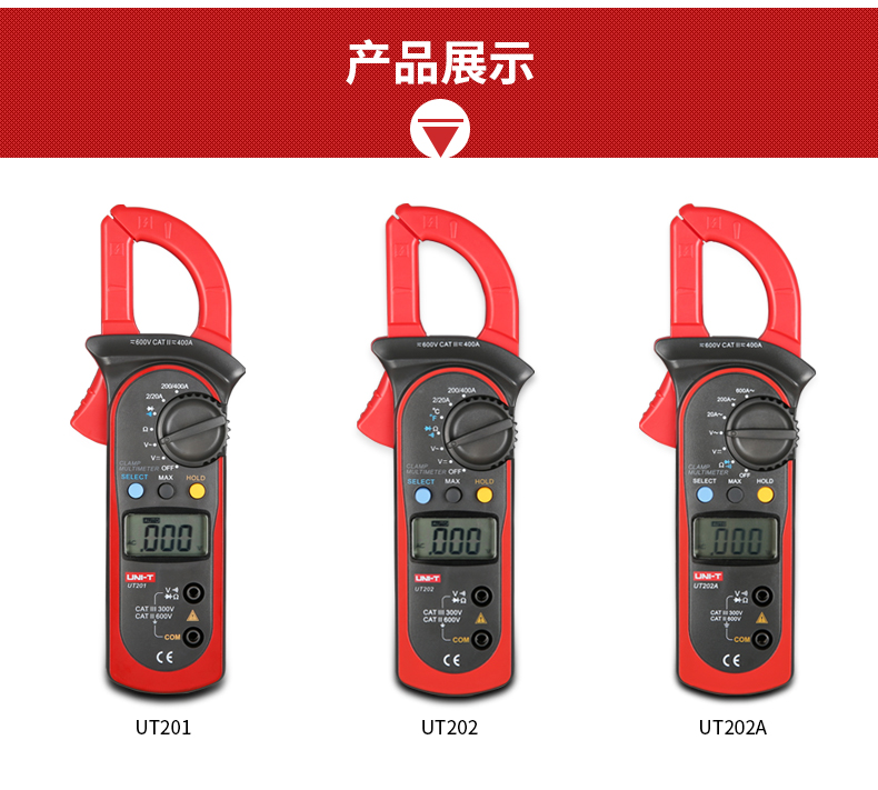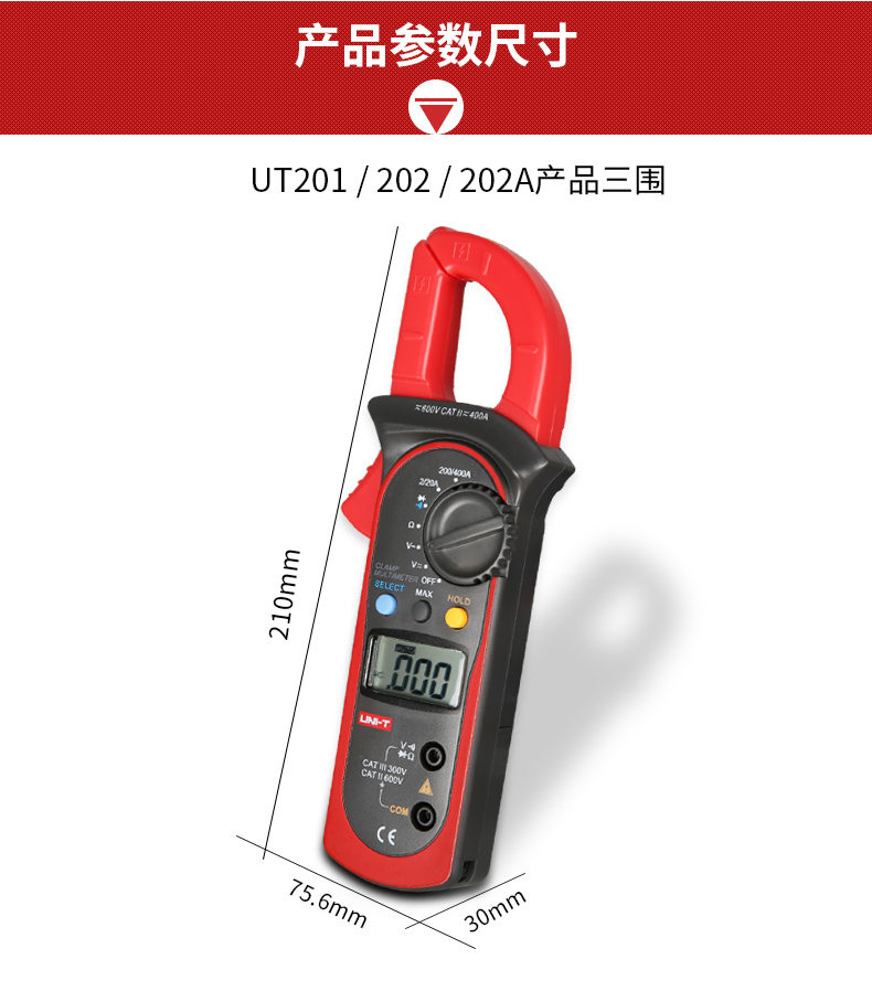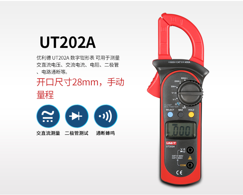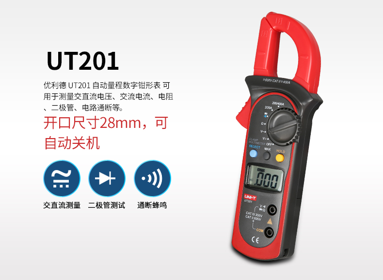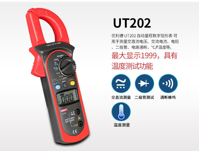 优利德UT201数字钳形万用表UT202数显钳表交流电流自动量程UT202A