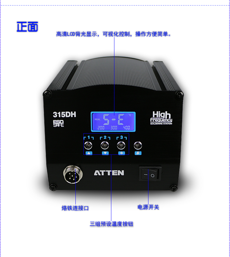 ATTEN安泰信AT315DH无铅防静电高频数显恒温电烙铁电焊台150W