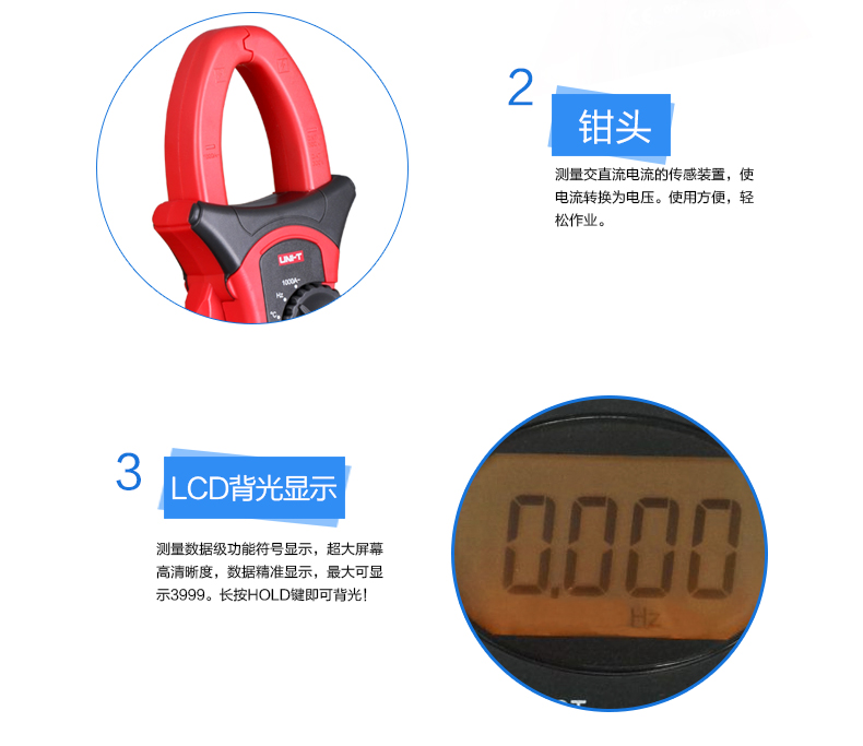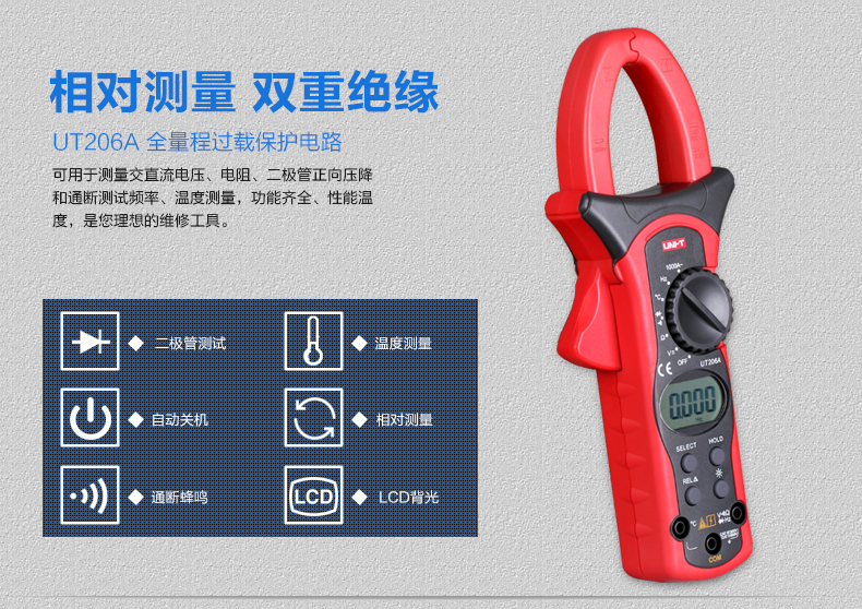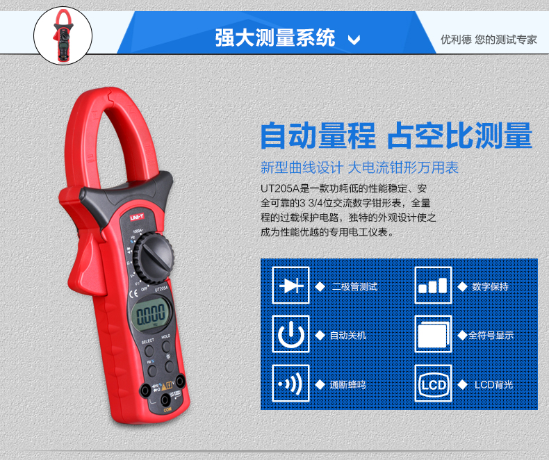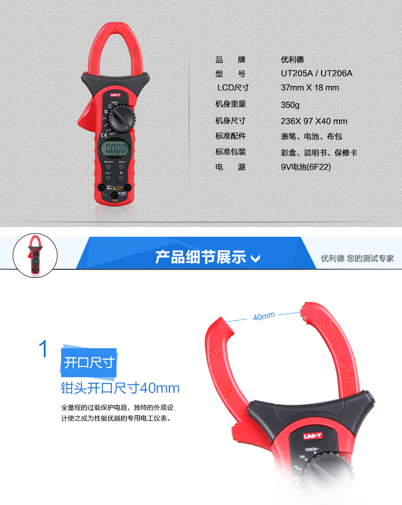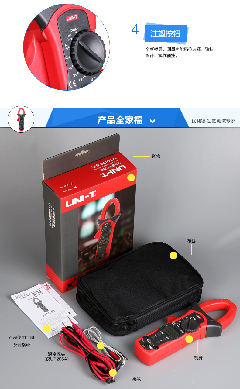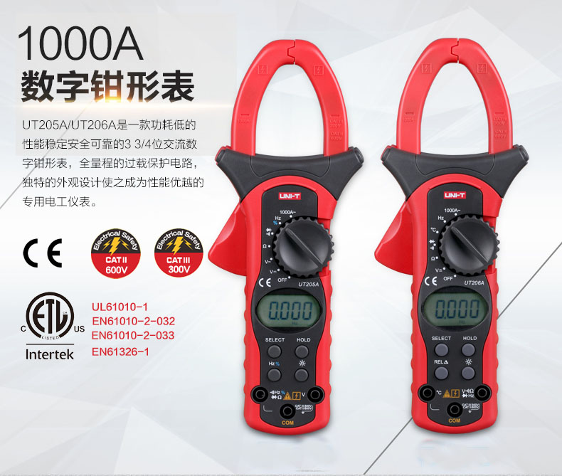 原装1000A优利德数字钳形万用表钳形表数显钳表UT205A/UT206A