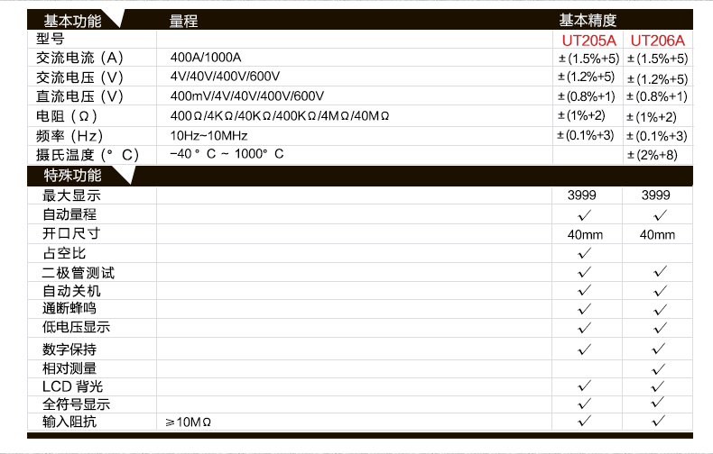 • 选择型号: UT205AUT206A