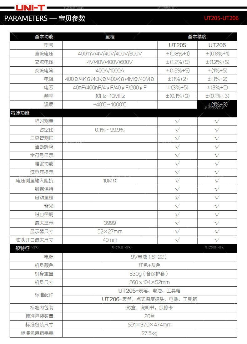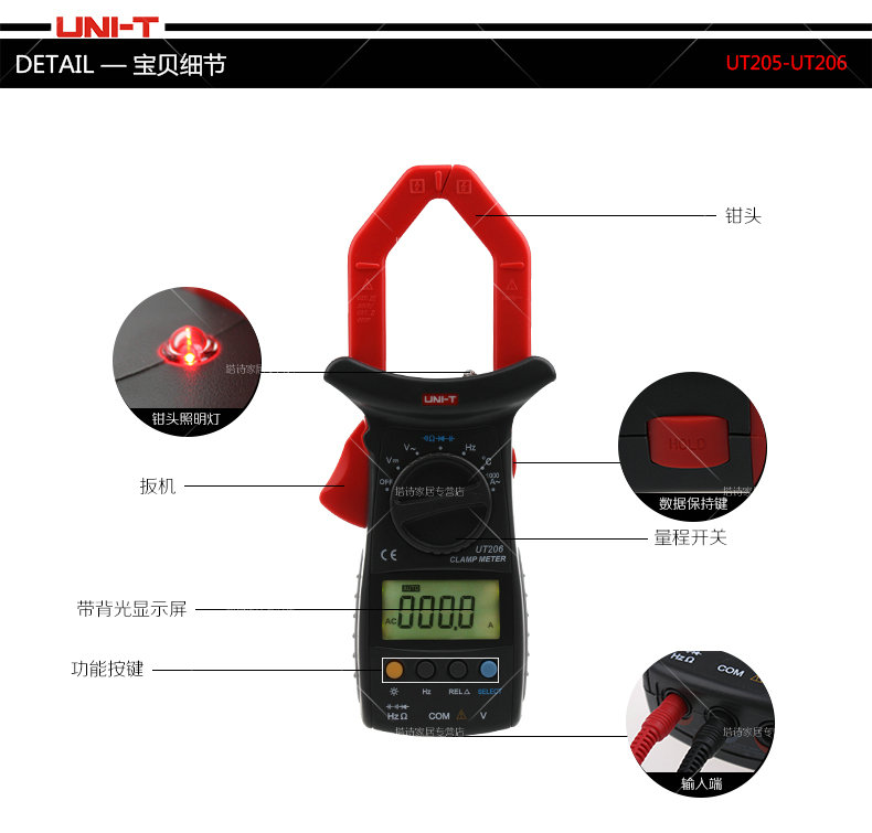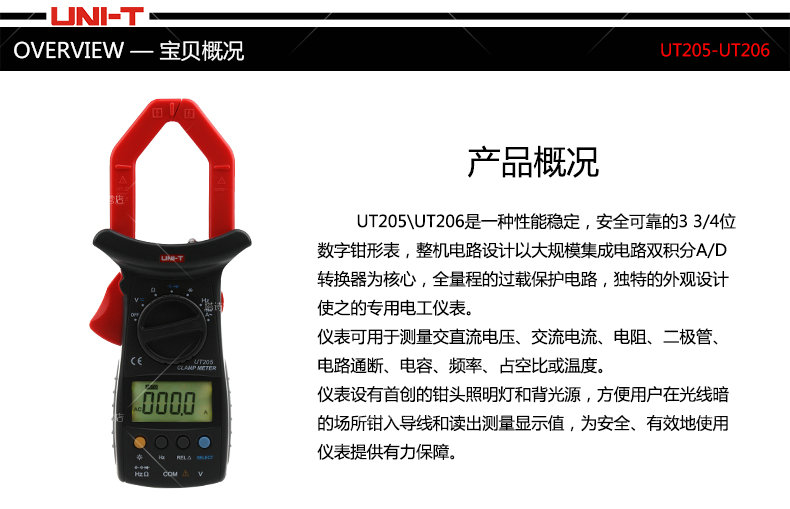 优利德数字钳形万用表UT205 自动量程测温电流表电流表UT206