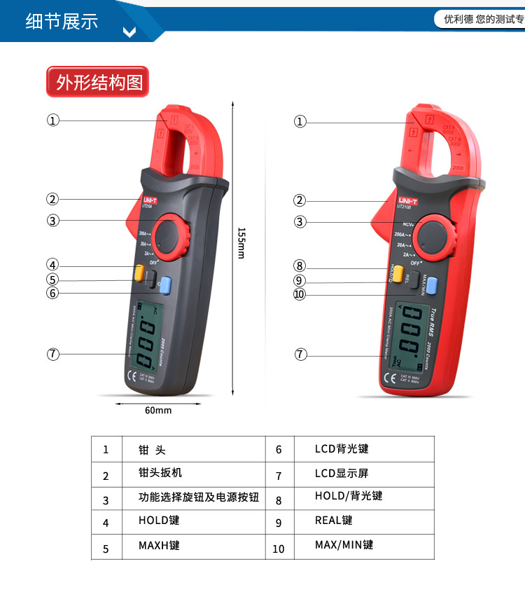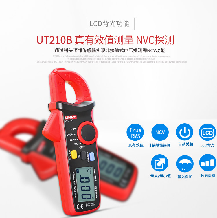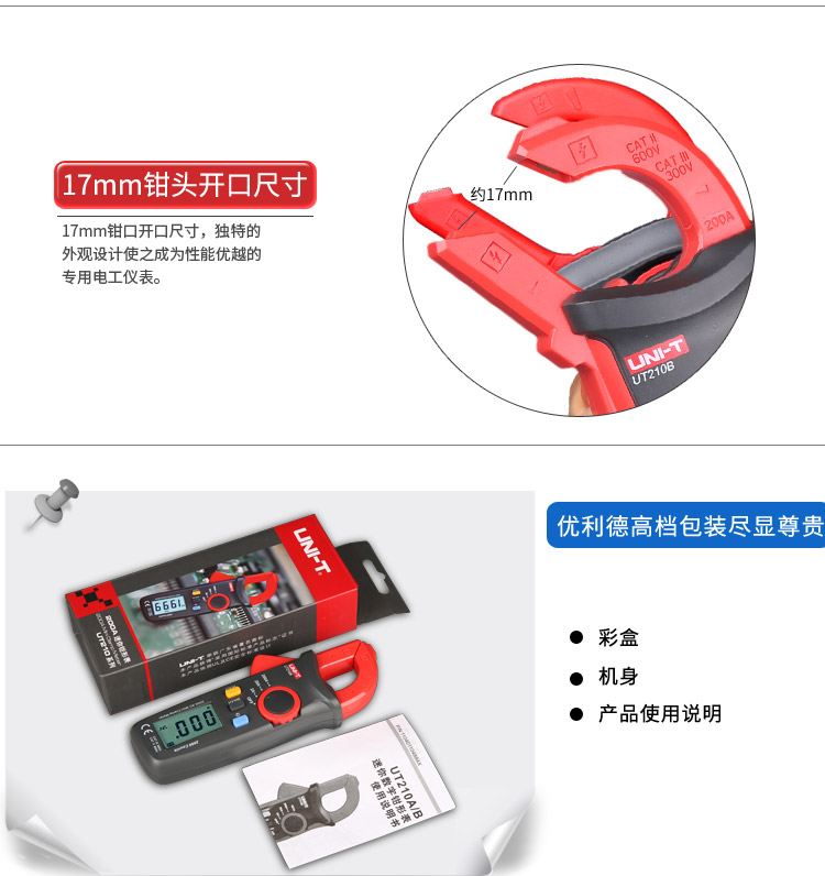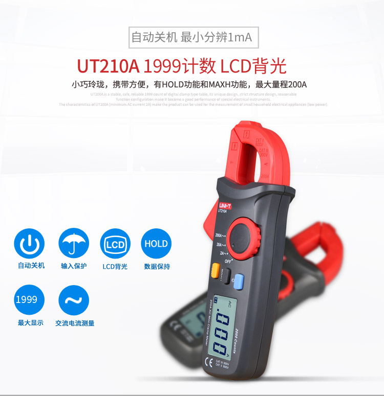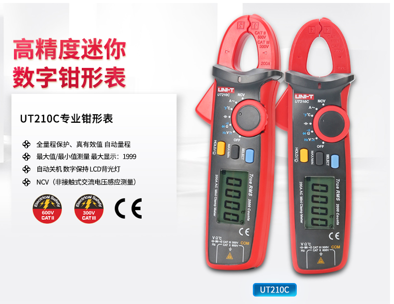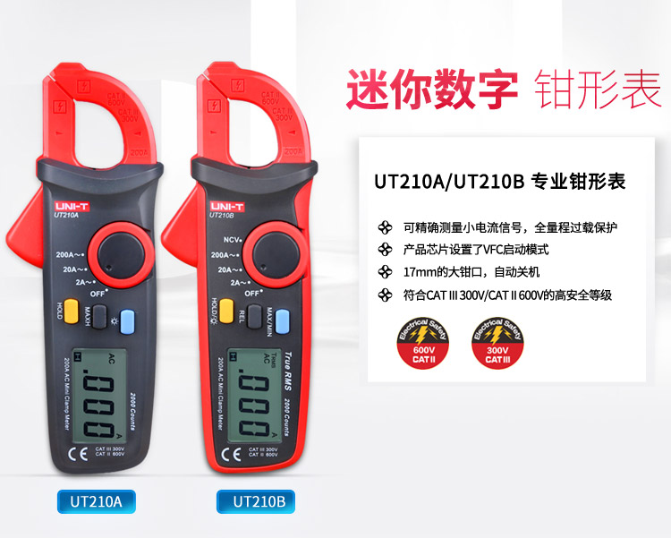 优利德UT210A/UT210B/UT210C数字钳形表迷你型电流表勾表