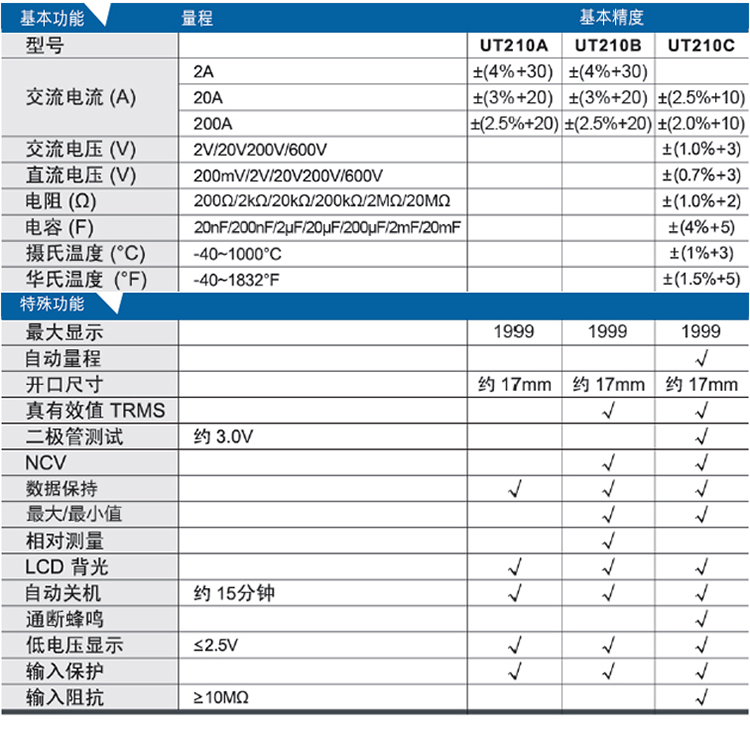 • 选择型号: UT210AUT210BUT210C