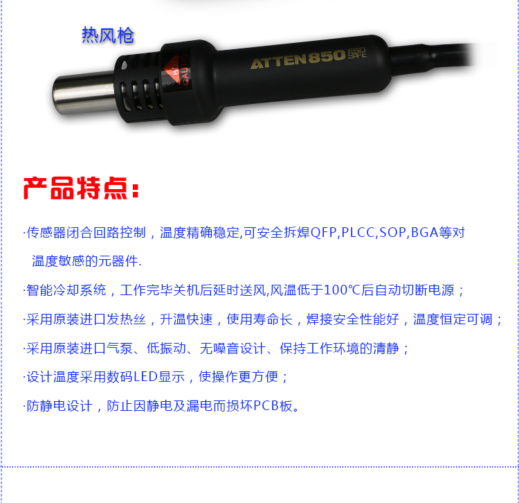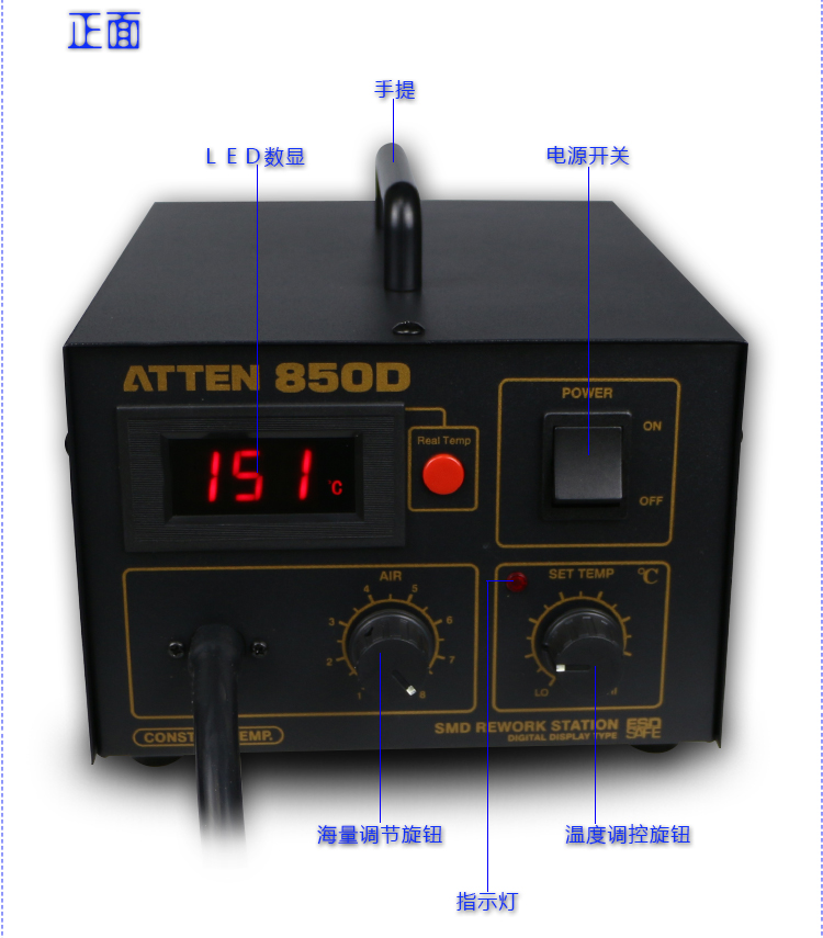 安泰信AT850D数显热风智能电焊台热风拔放台高级拆焊台热风枪550W