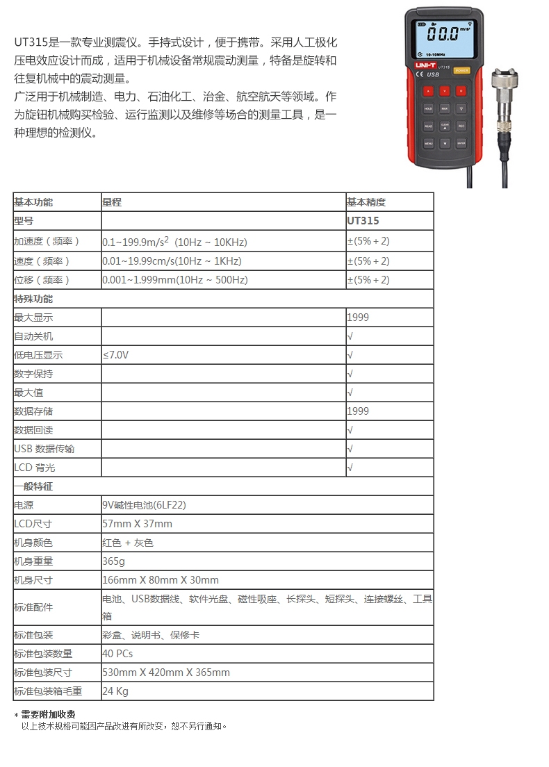 优利德UT311/312/315/便携式测振动测量仪多功能高精度震动测试仪