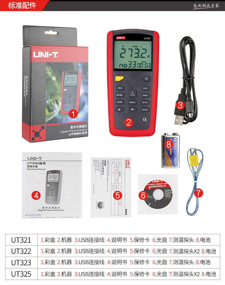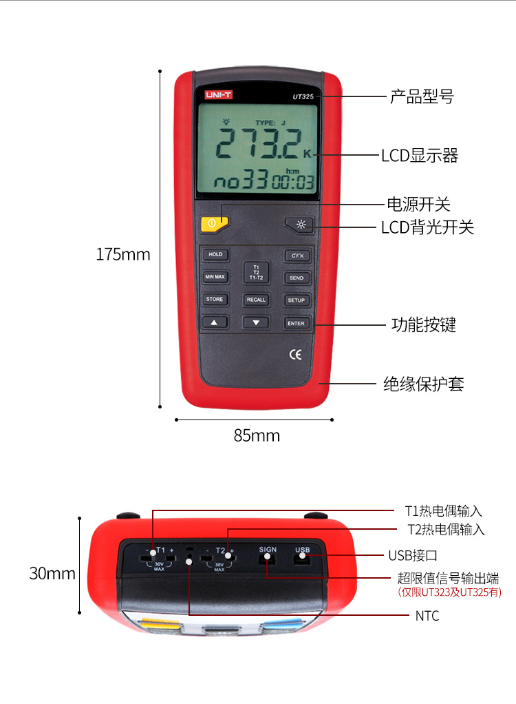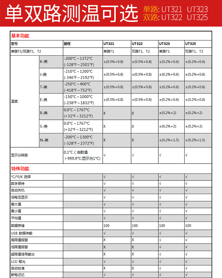 unit优利德UT321/325接触式测温仪热电偶温度计K型数字温度表