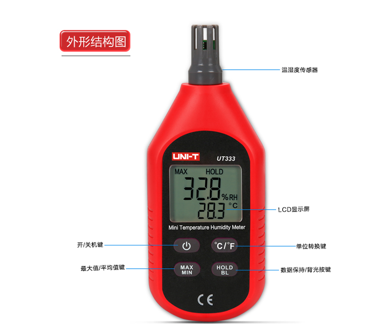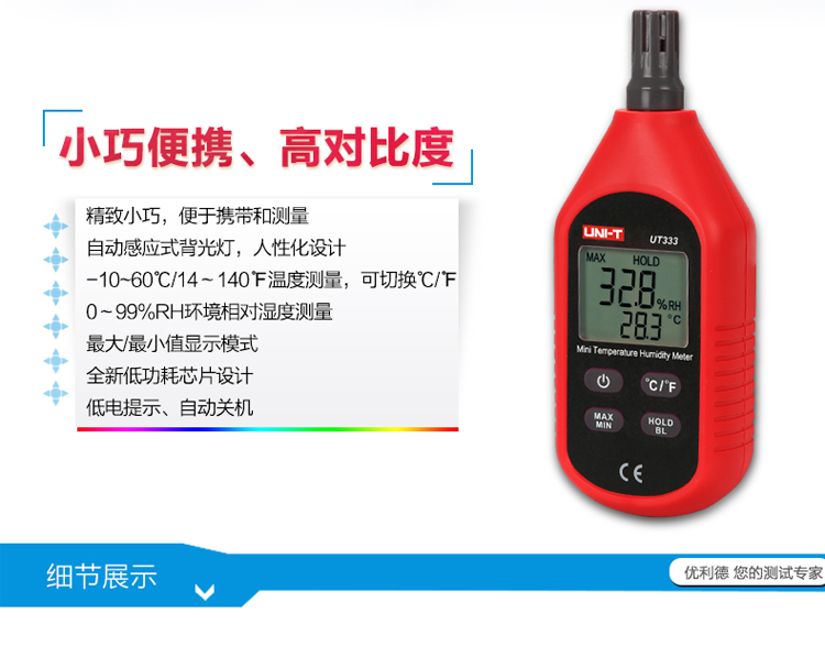 优利德UT333迷你型温湿度计工业空气湿度计湿度检测仪药房大棚