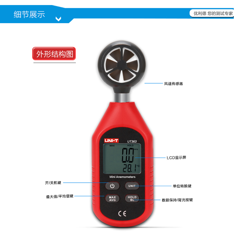 优利德UT363数字风速仪测风速仪高精度测风仪风速计测风速仪