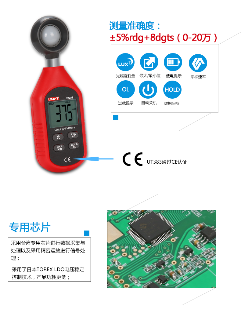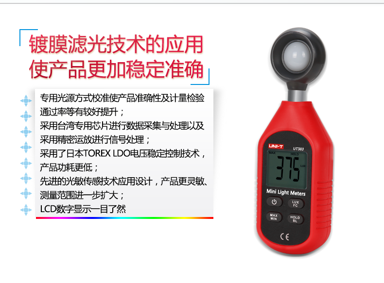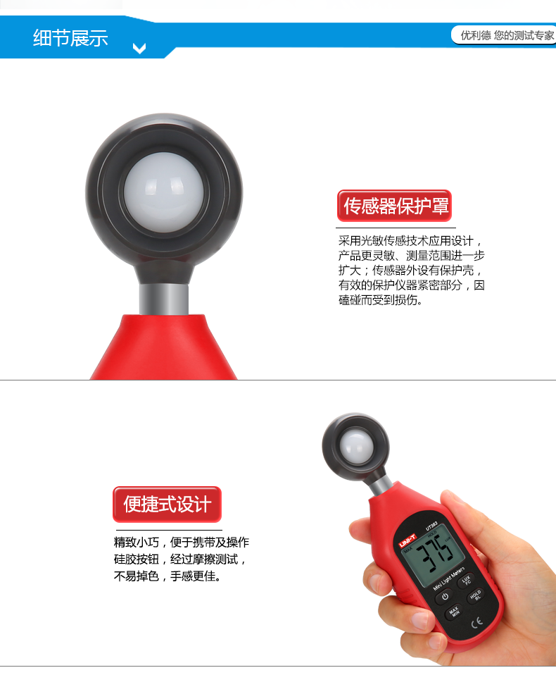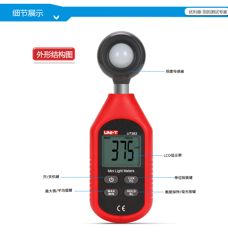 优利德UT383数字照度计测光仪高精度光照度计测光仪亮度仪