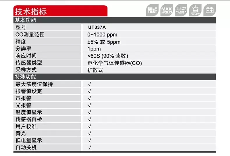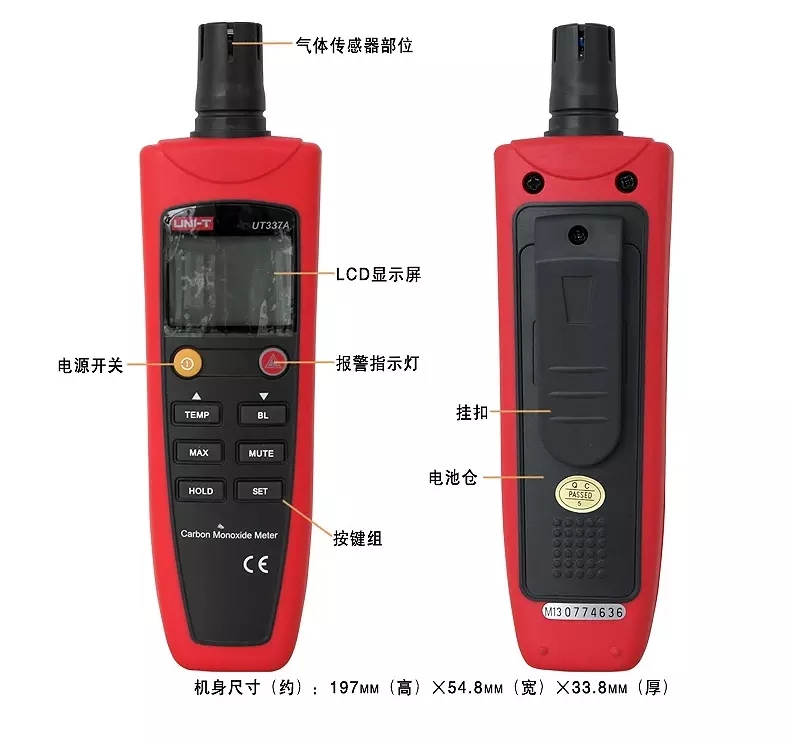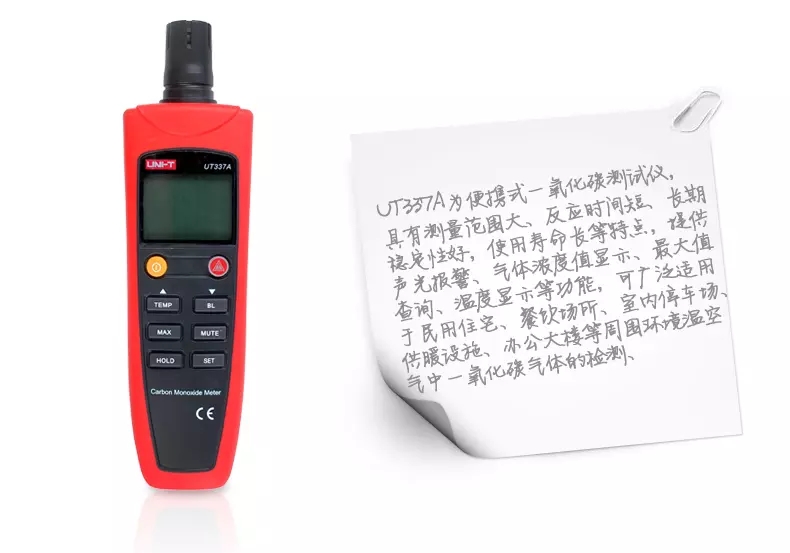 优利德UT337A一氧化碳测试仪声光报警温度显示可燃气体检测仪
