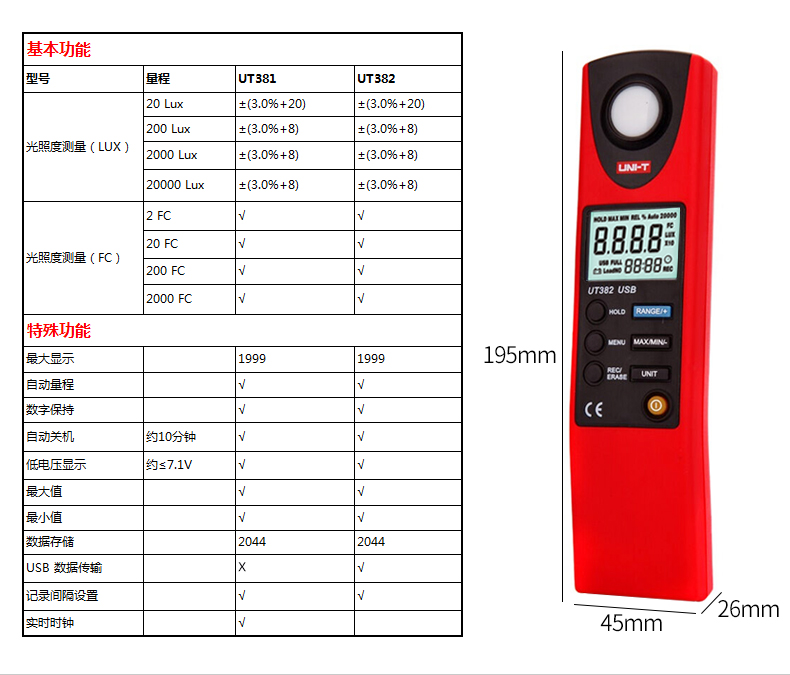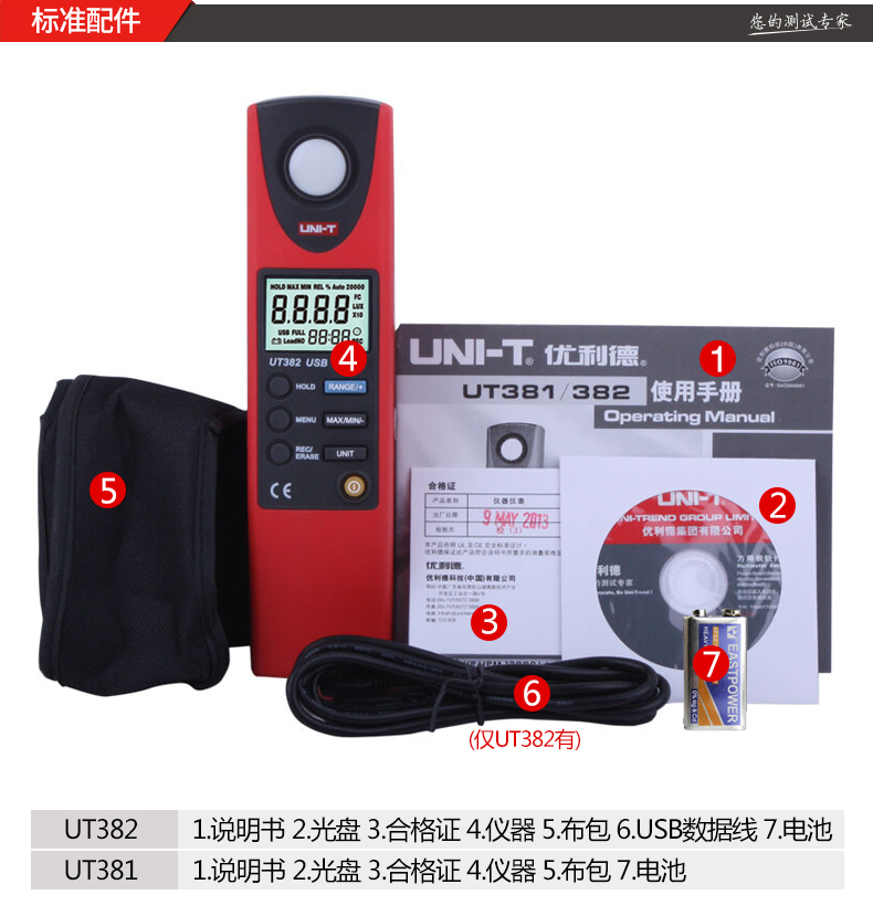 优利德数字式照度计UT381/382照度仪光度计亮度计光度表测光仪