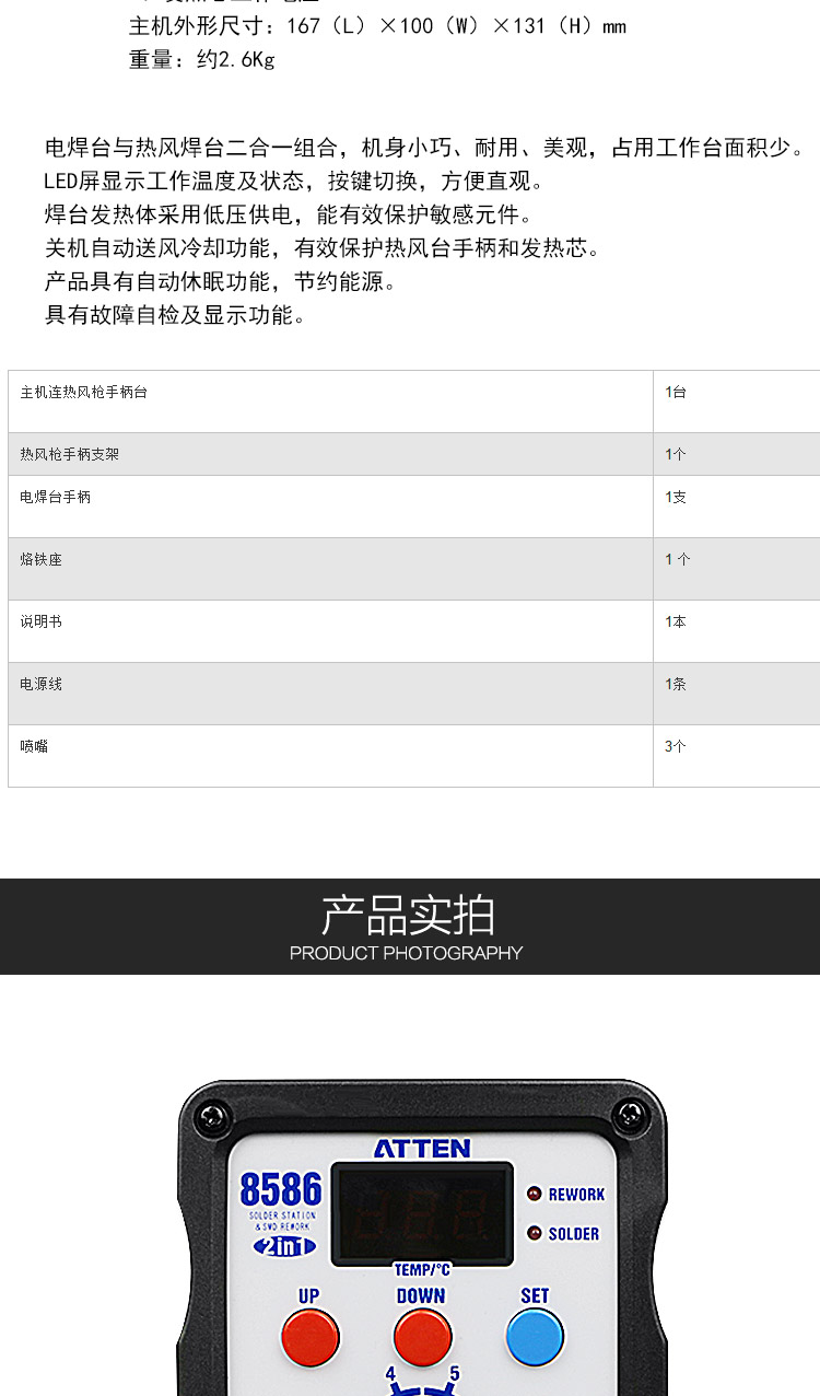 深圳安泰信AT8586数显调温热风烙铁二合一热风拆焊台电烙铁电焊台