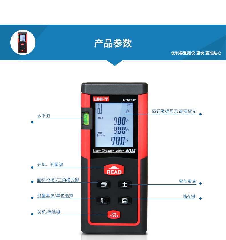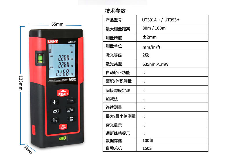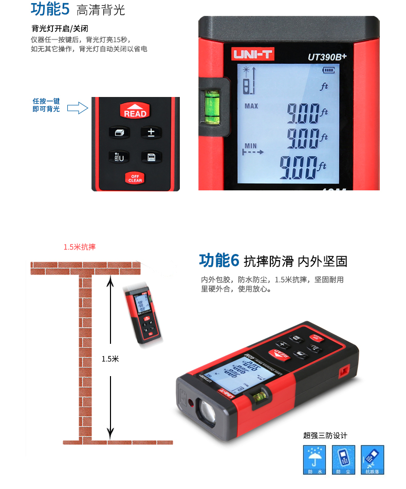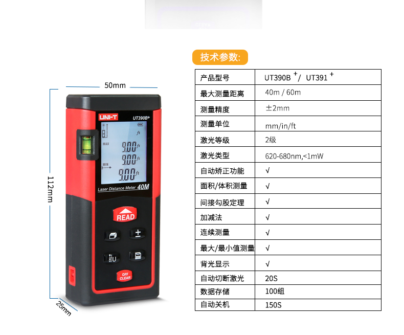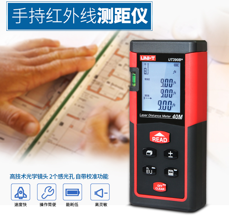 优利德UT390B+/ UT391+手持激光测距仪高精度红外线测距仪量房仪电子尺