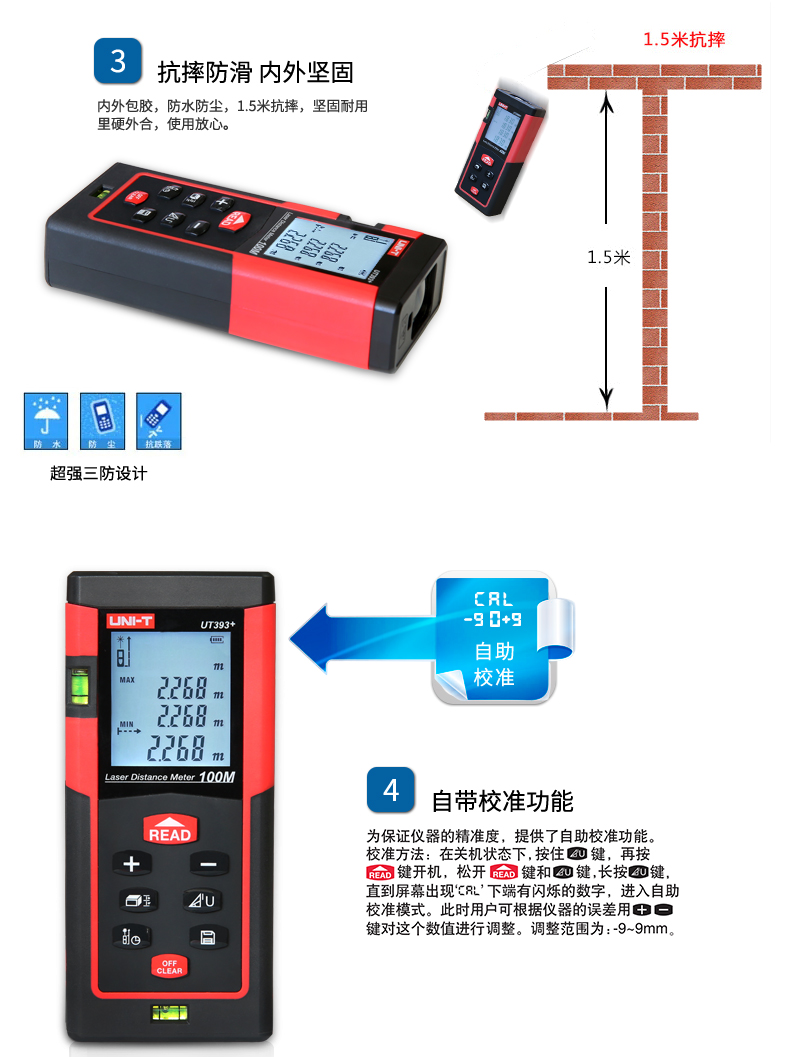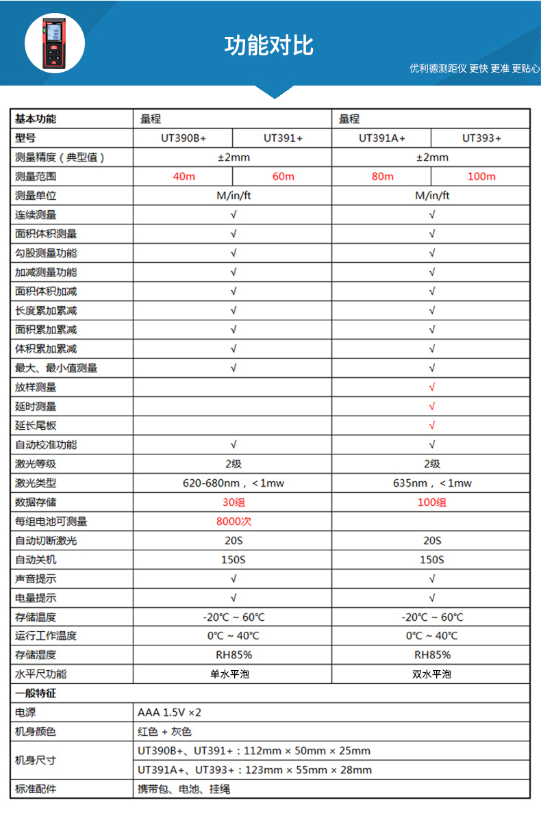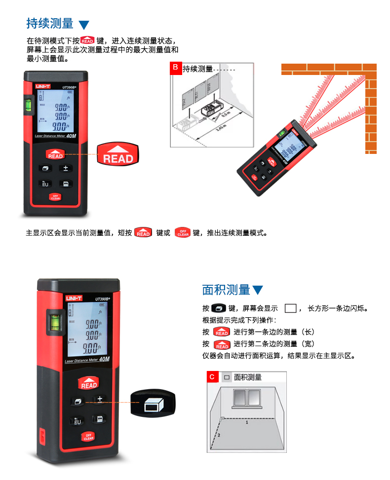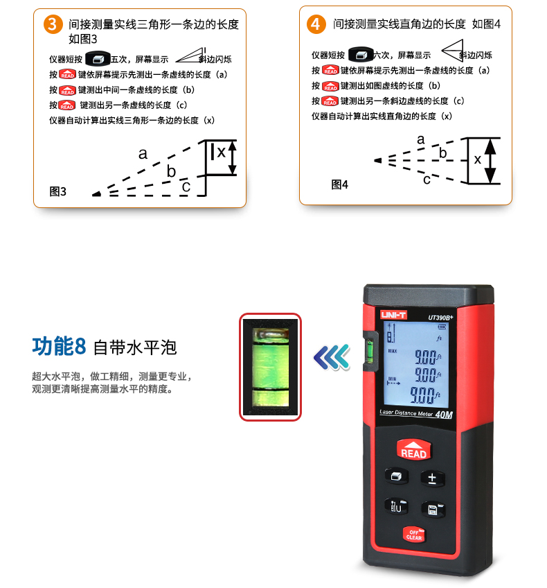 优利德UT390B+/ UT391+手持激光测距仪高精度红外线测距仪量房仪电子尺