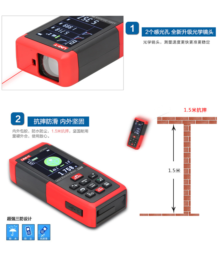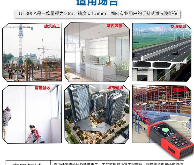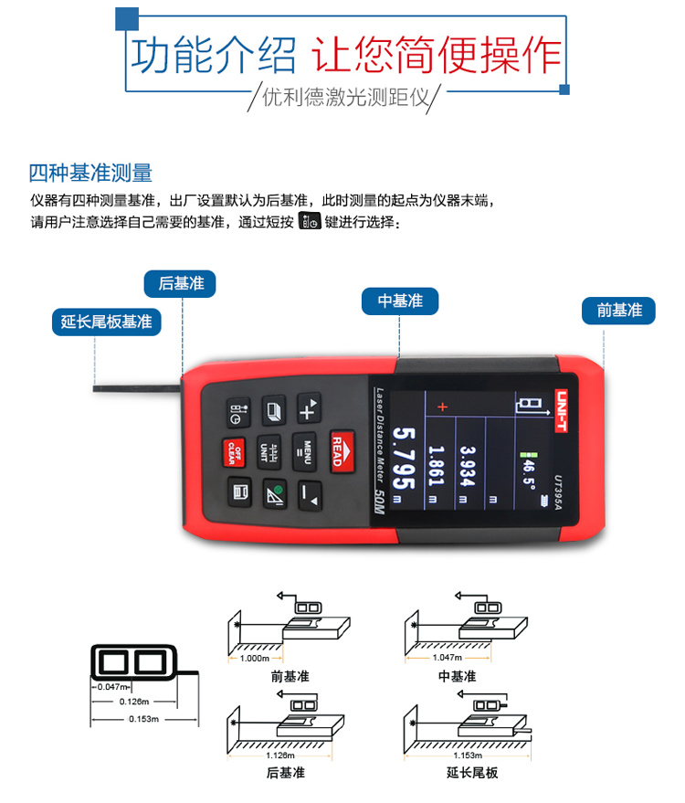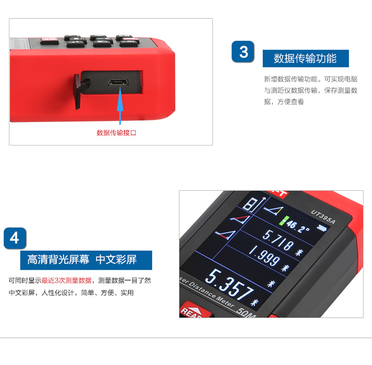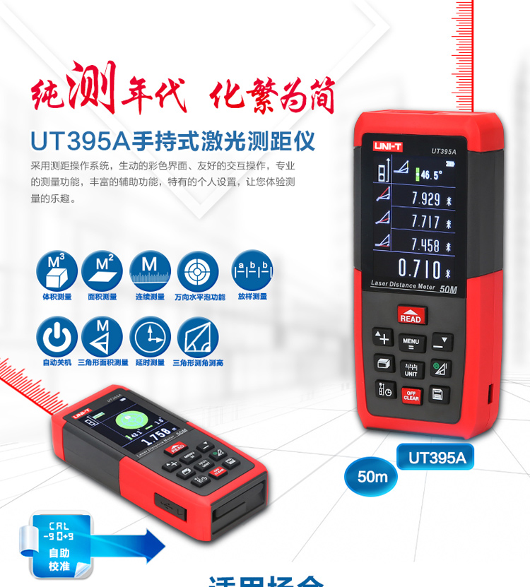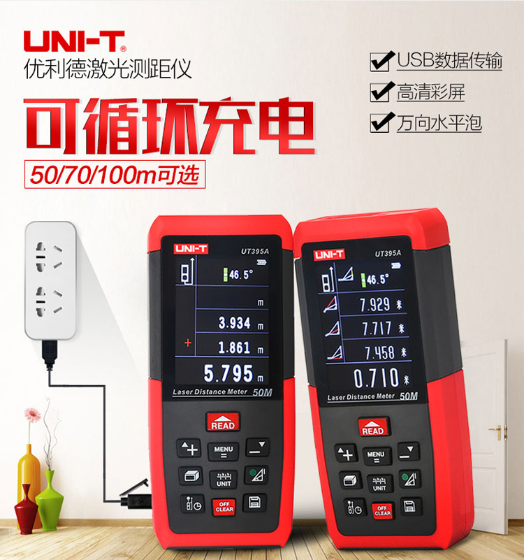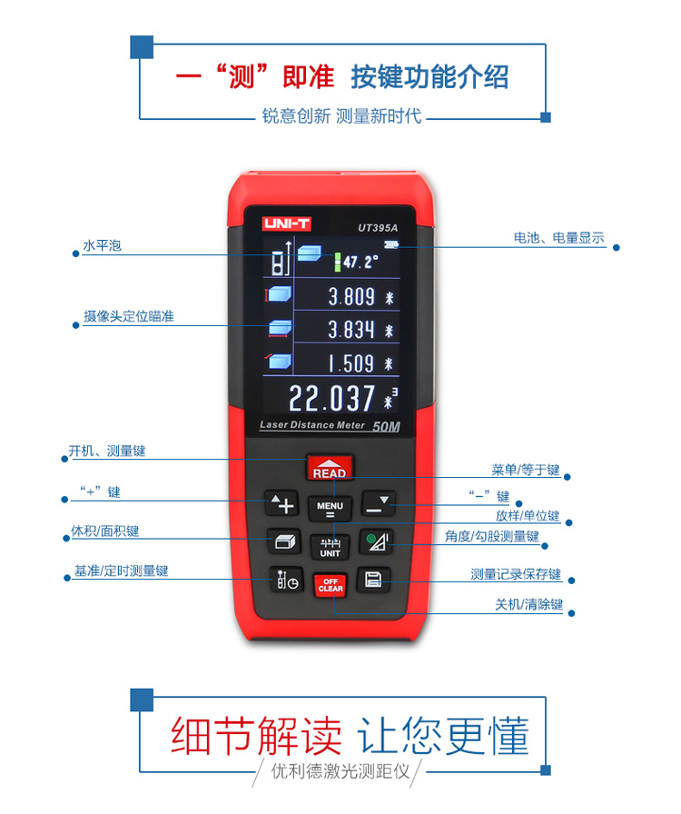 优利德彩屏高精度激光测距仪 手持红外线测量仪电子尺UT395A/UT395B