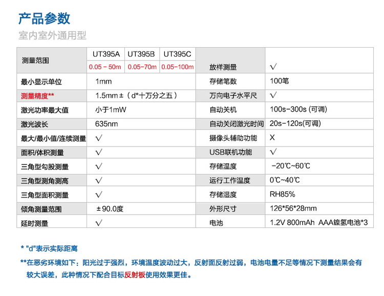 激光测距仪高精度红外线测量仪UT395C