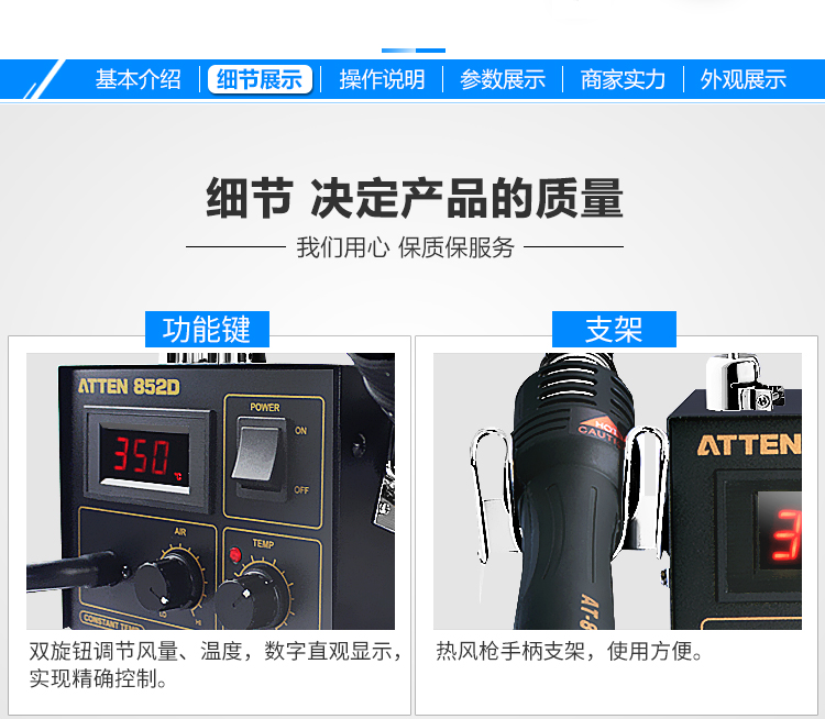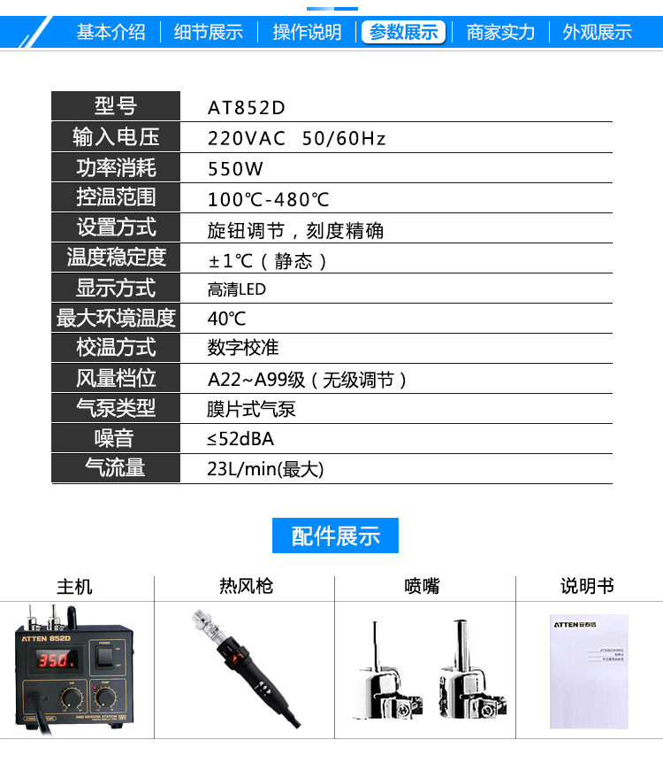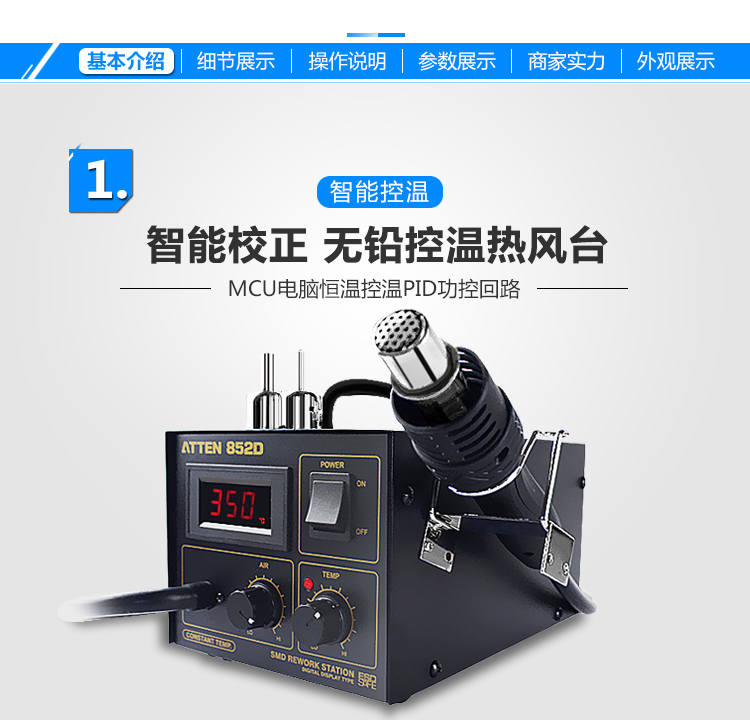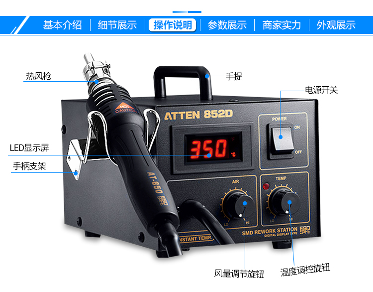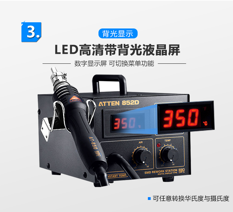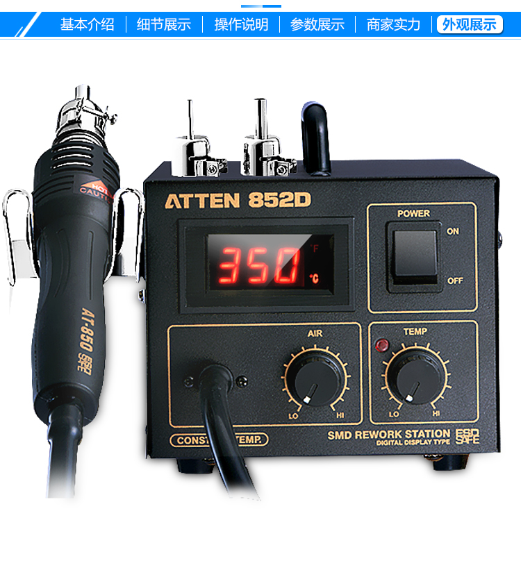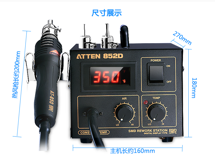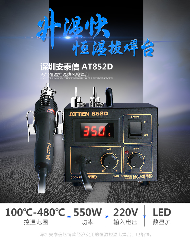 安泰信AT852D热风枪焊台550W数显拆焊台恒温拨焊台