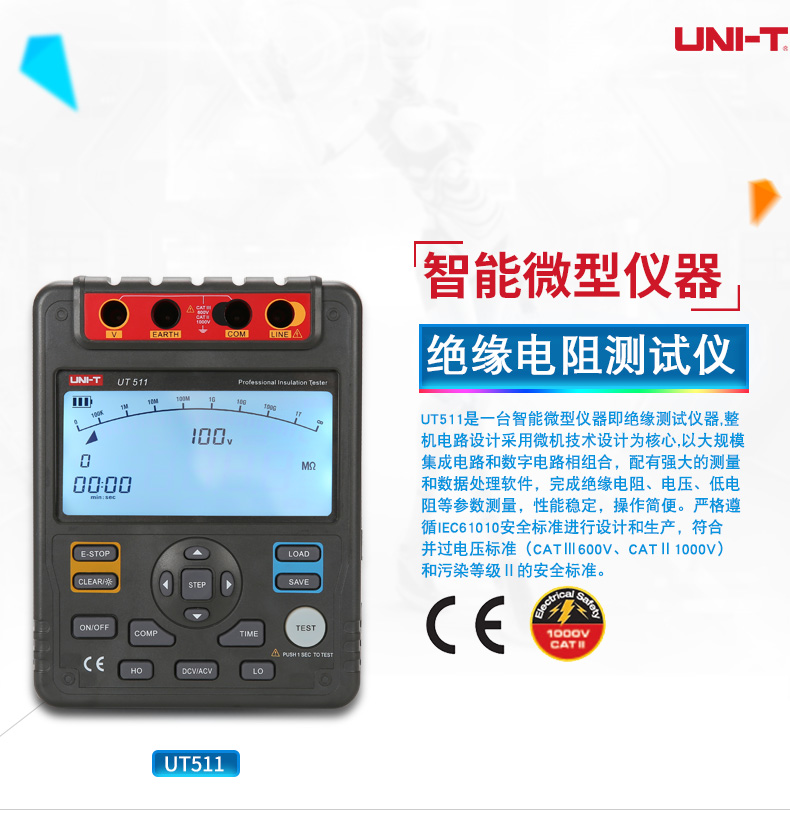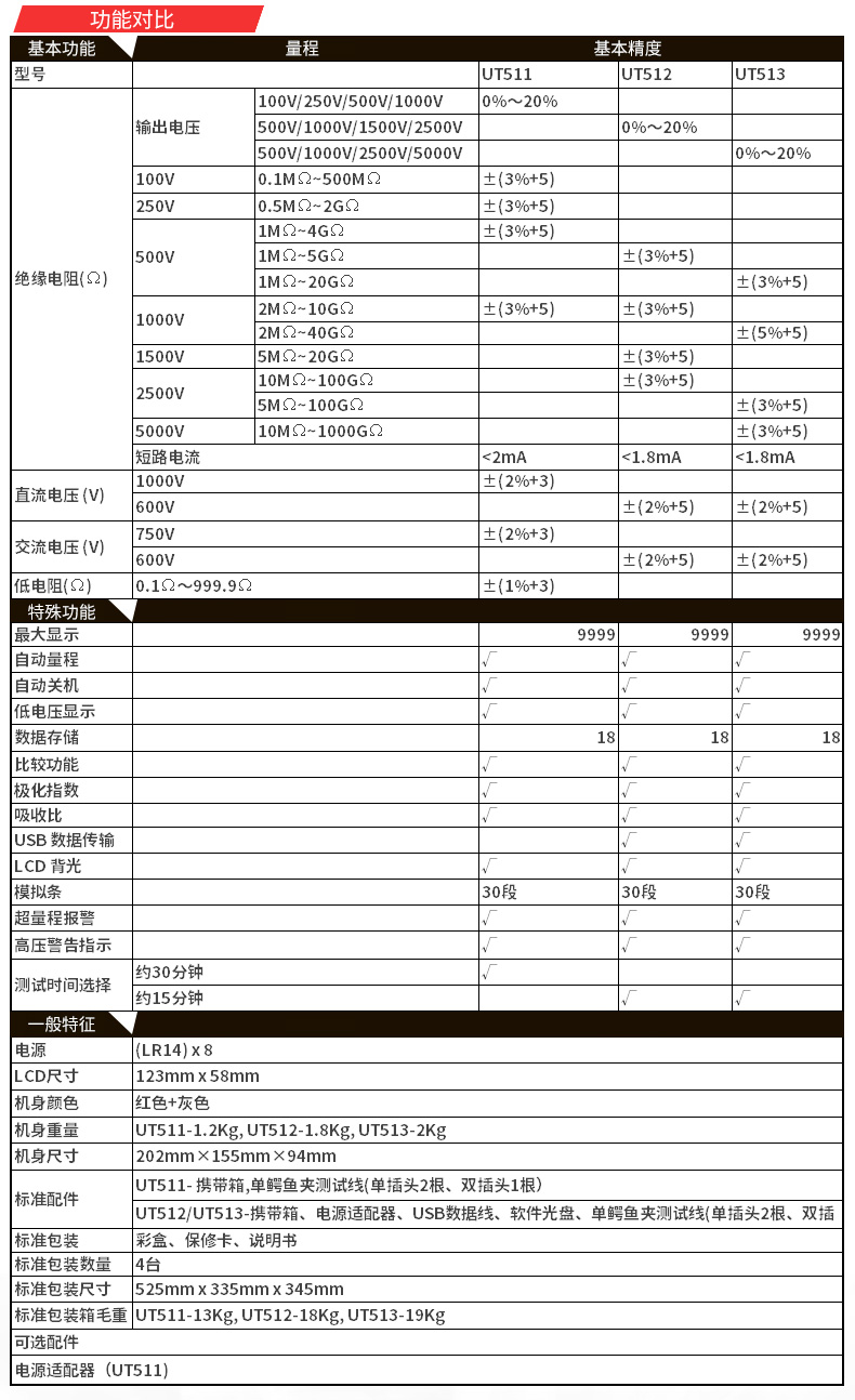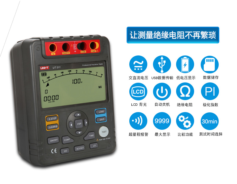包邮特惠优利德UT511/512/513绝缘电阻测试仪数字兆欧表 绝缘摇表