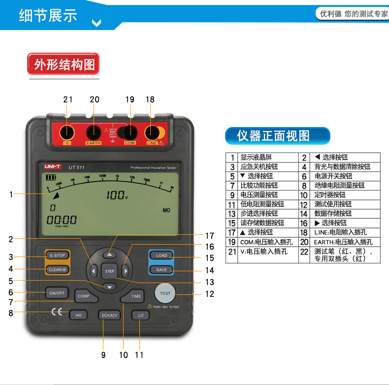 • 选择型号: UT511UT512UT513