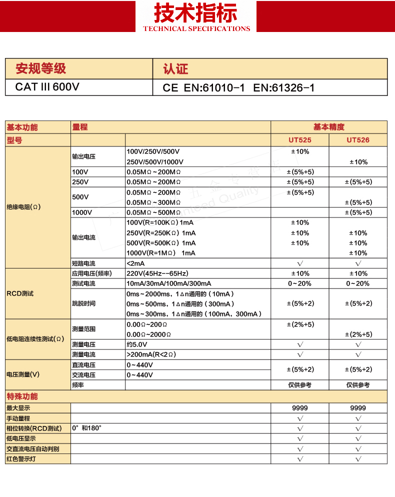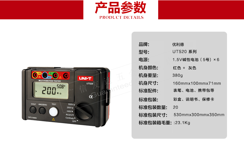 UNI-T/优利德UT520系列多功能电气测试仪UT526 保证