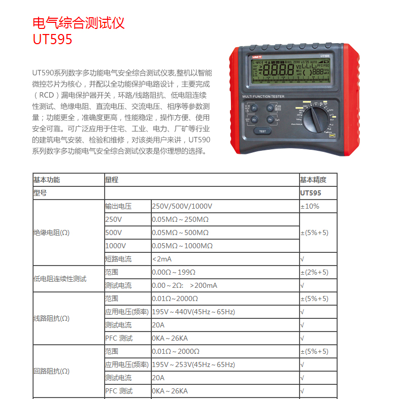 优利德 UT595 电气综合测试仪低电阻连续性测试功能