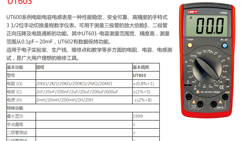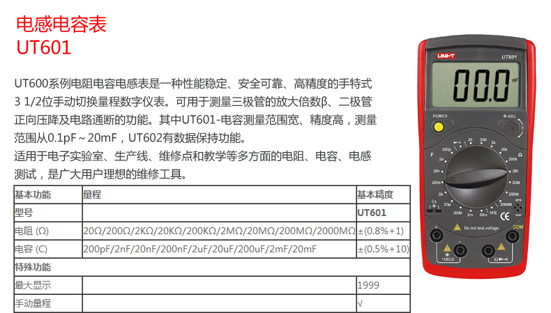 UNI-T优利德UT601/UT603数字电感电容表电压表 万用表电镀电容电阻