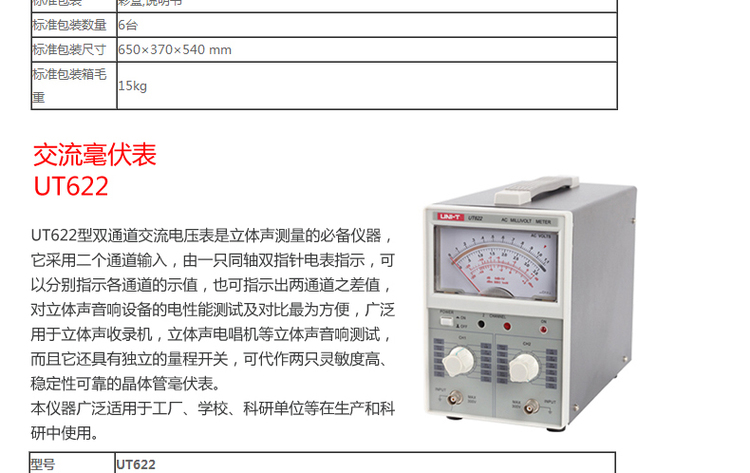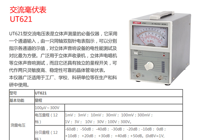优利德UT621/UT622 双通道高精度数字交流毫伏表双指针电压表