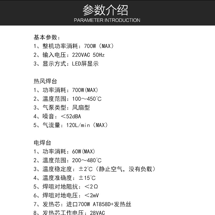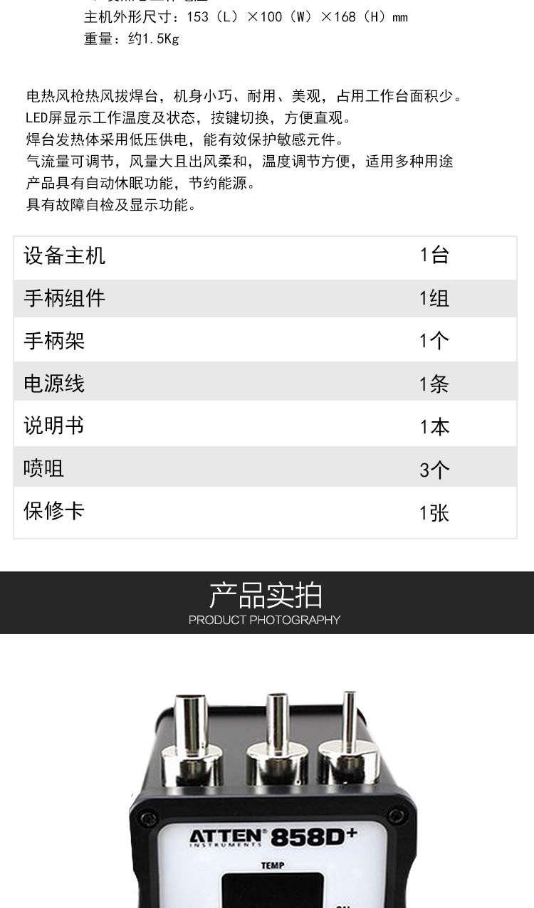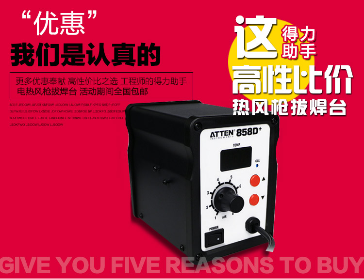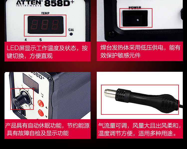 安泰信AT858D+数显热风拔焊台热风枪采用进口无刷风机700W