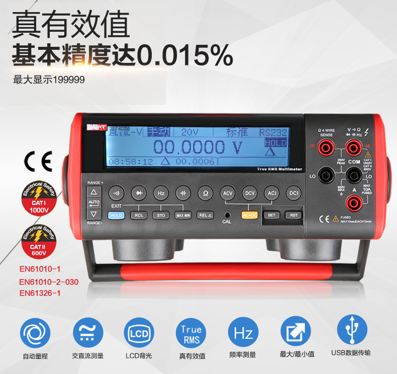 优利德台式数字万用表UT805A 高精度五位半点阵大屏背光自动量程