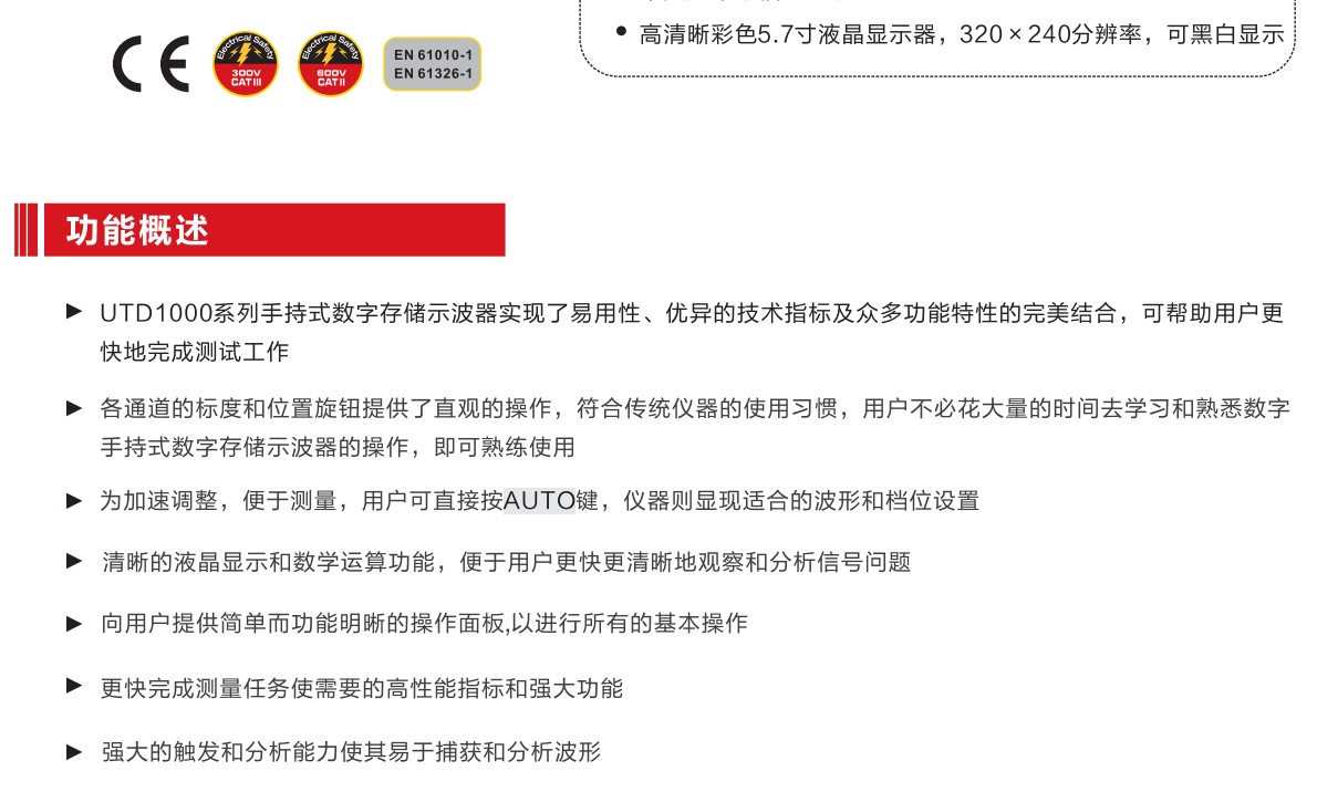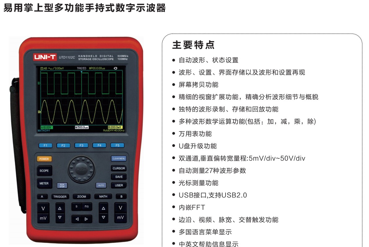 优利德手持式数字存储示波表UTD1062C/UTD1102C