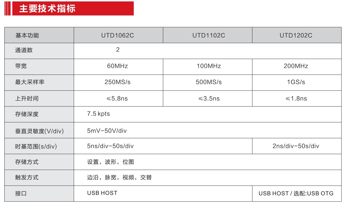 • 选择型号: UTD1062CUTD1102C