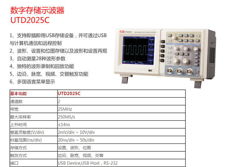 优利德数字储存示波器60M带宽UTD2025C双通道示波器 1 Gs/s采样