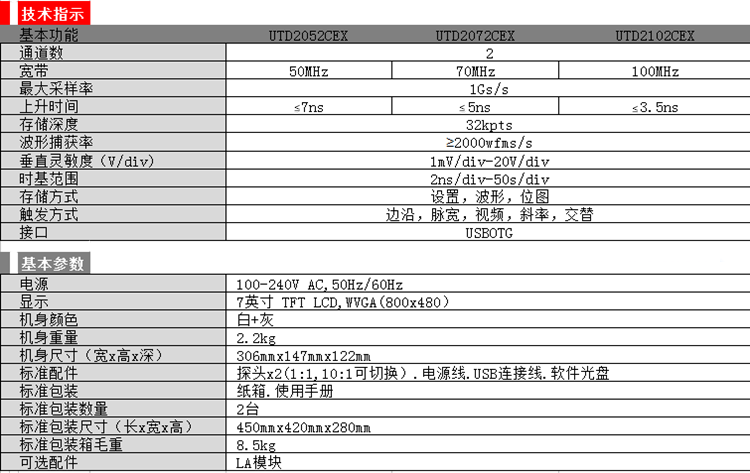 厦门优利德UTD2072CEX 双通道数字存储示波器