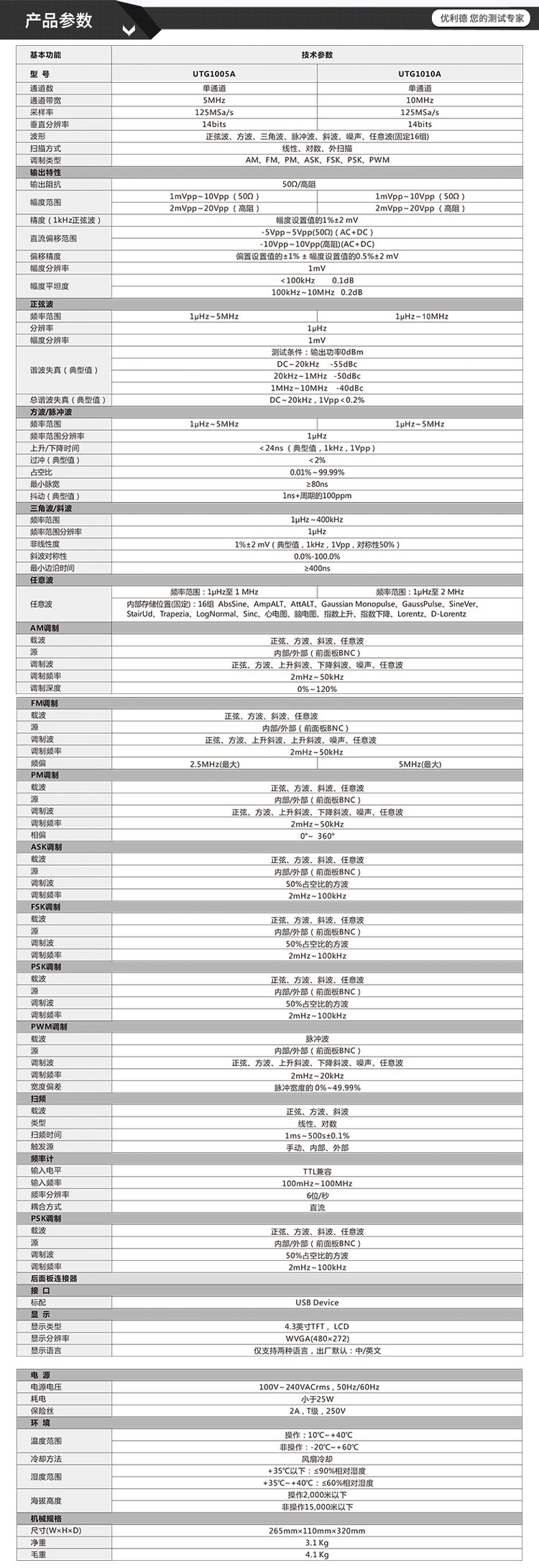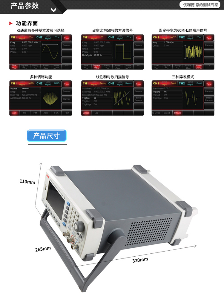 优利德函数信号发生器信号源任意波形发生器频率计UTG1005A/2025A