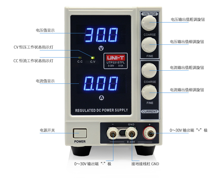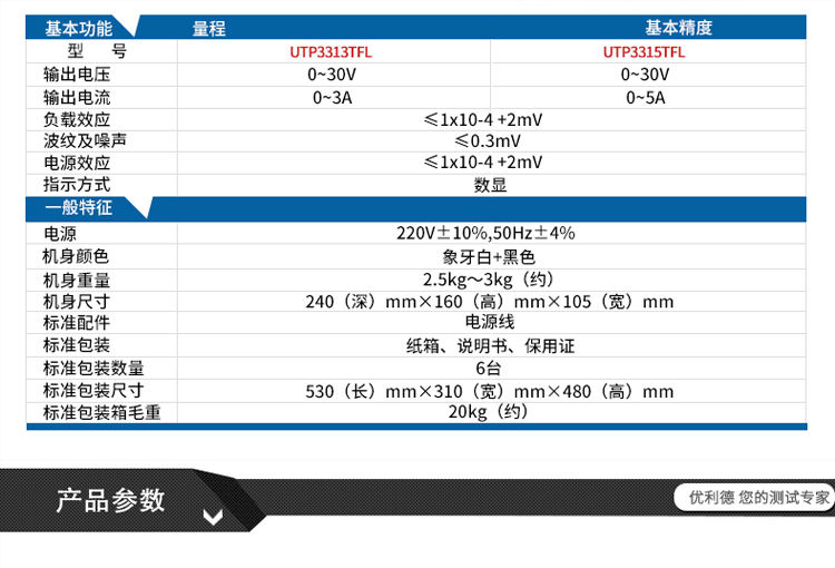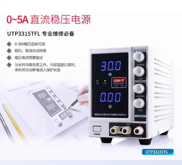 优利德UTP3315TFL/UTP3313TFL直流稳压电源30V5A手机维修电源可调