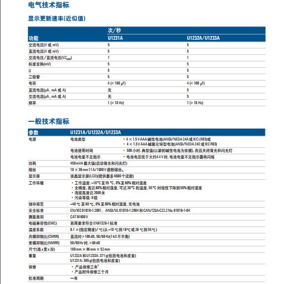 是德科技/Agilent/安捷伦手持式数字万用表U1231A/U1232A/U1233A