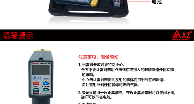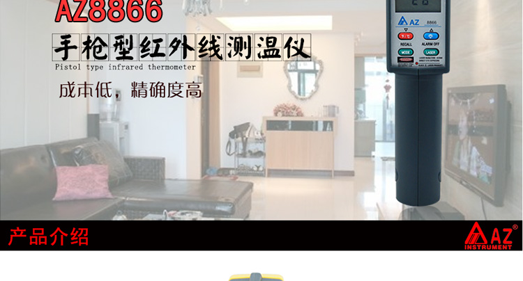 台湾衡欣-20~420℃非接触红外电子激光点温计测温仪带报警AZ8866