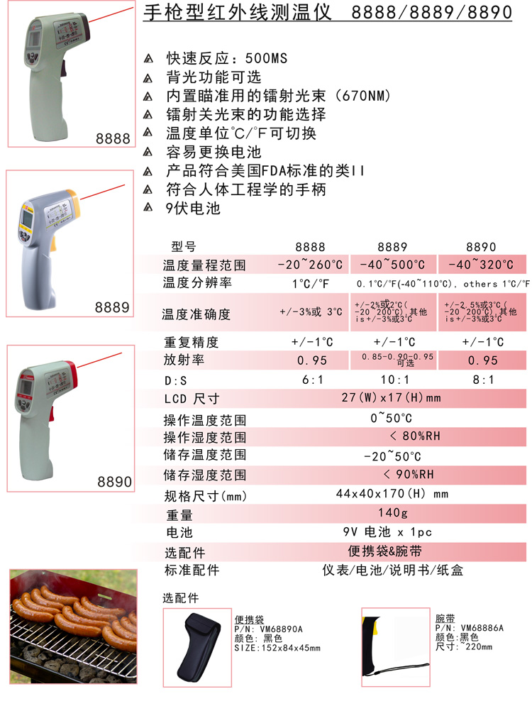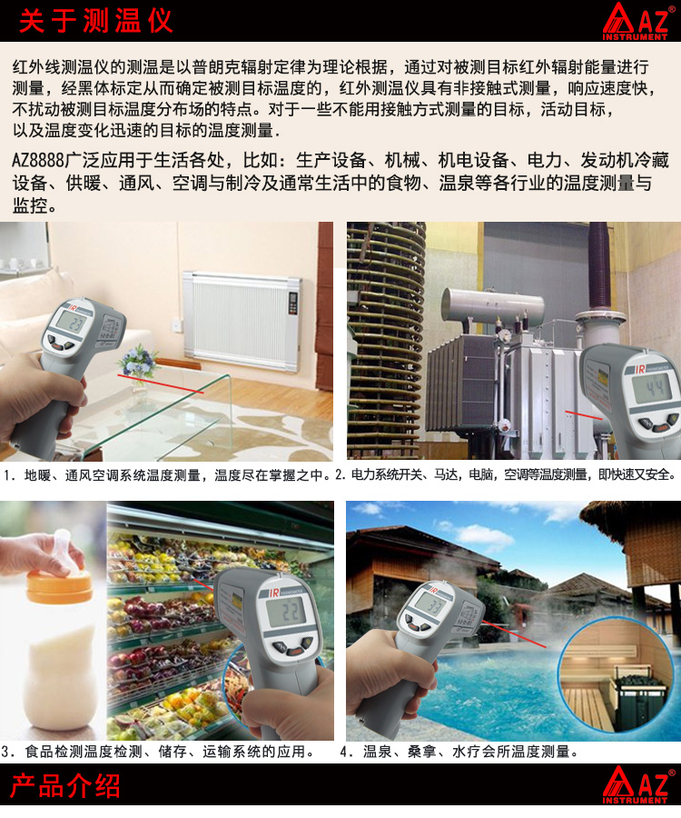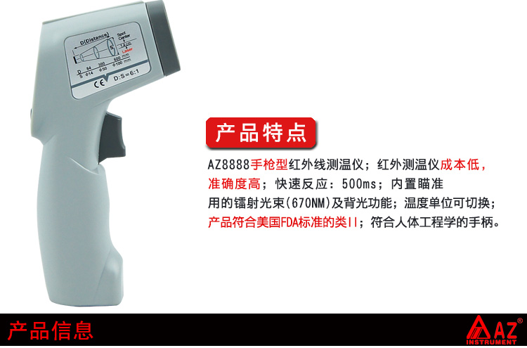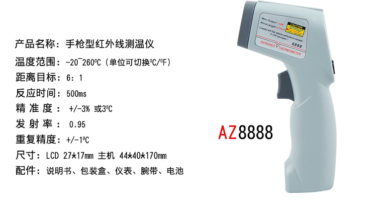 衡欣原装 AZ8888红外线测温仪,温度计-20~260℃