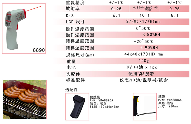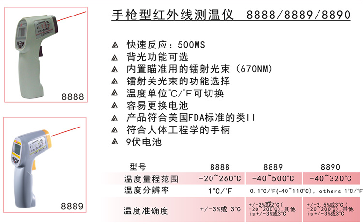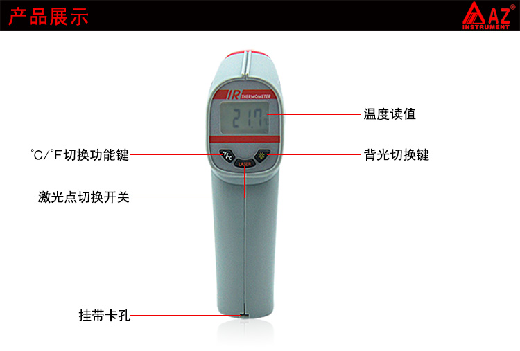 台湾衡欣 AZ8890红外线测温仪 测温枪电子温度计非接触电子测温仪