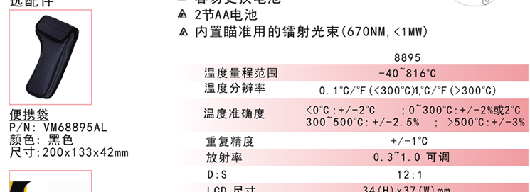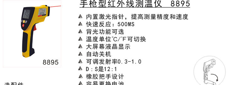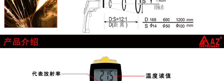 衡欣红外线测温仪建筑测温仪 手枪式AZ8895 测温仪枪 火焰测温仪