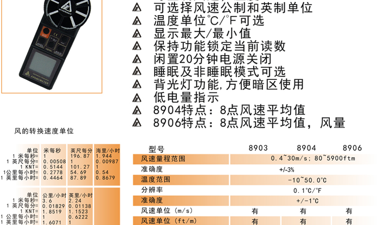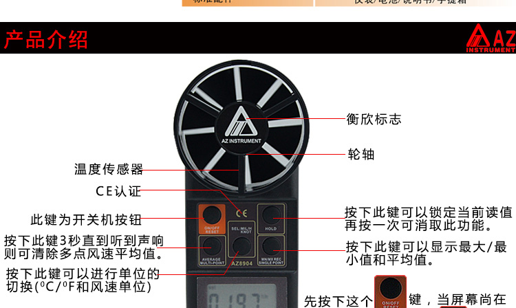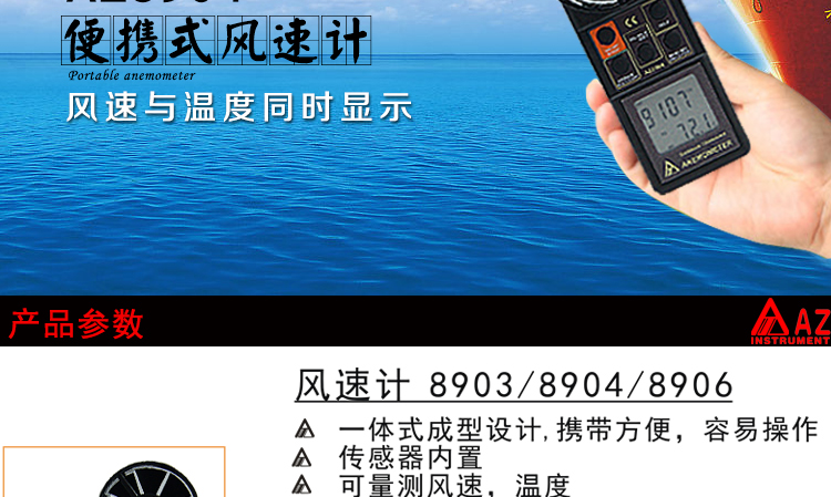 衡欣 AZ8904 手持式数字风速仪 风速计 测试仪 电子风速测量仪表