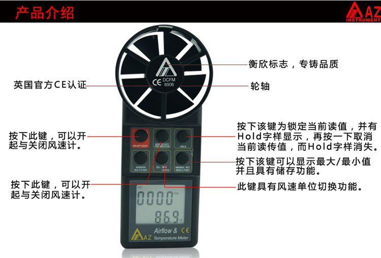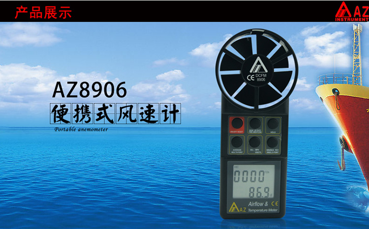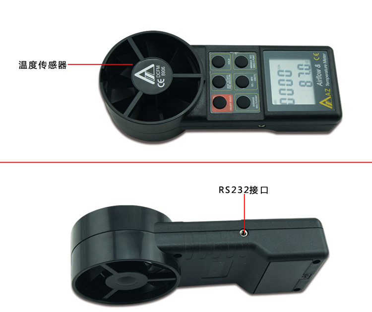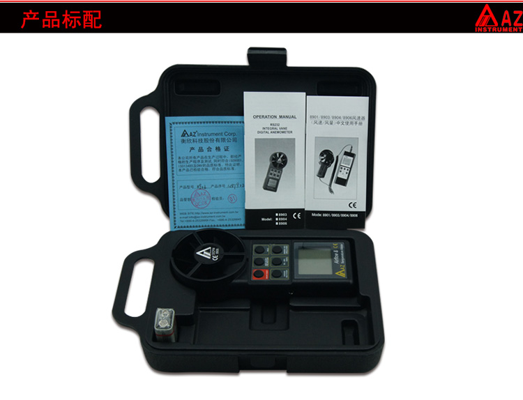台湾衡欣 AZ8906手持数字风速仪风速计 数显风速风量风温测量