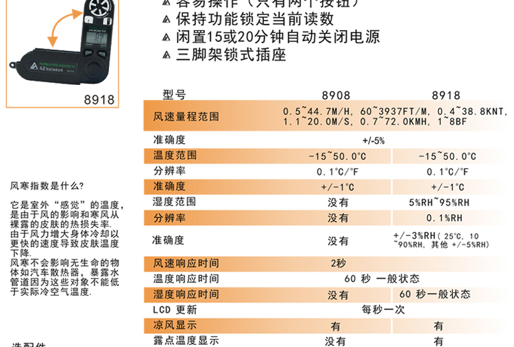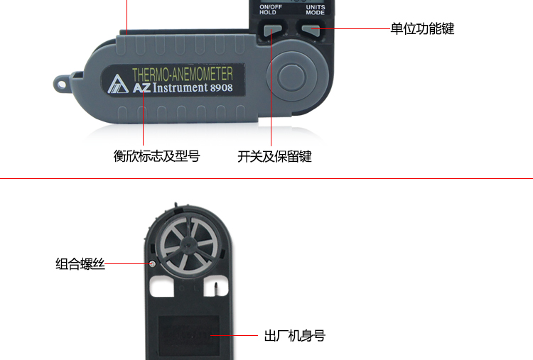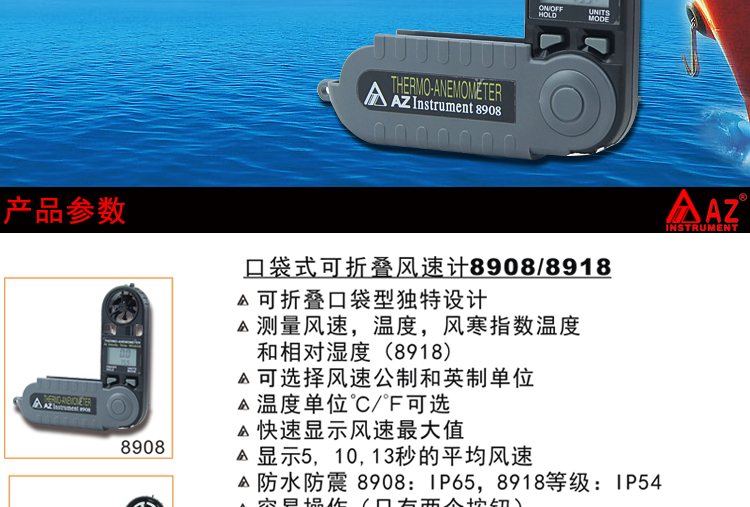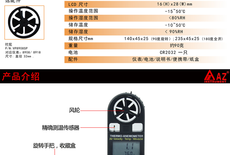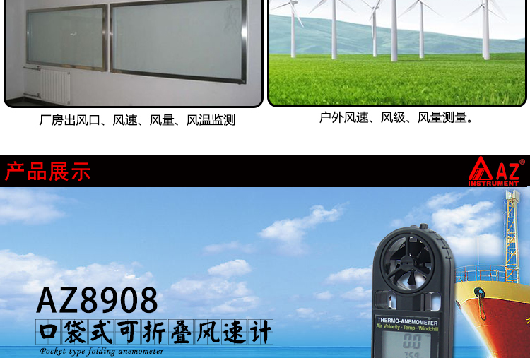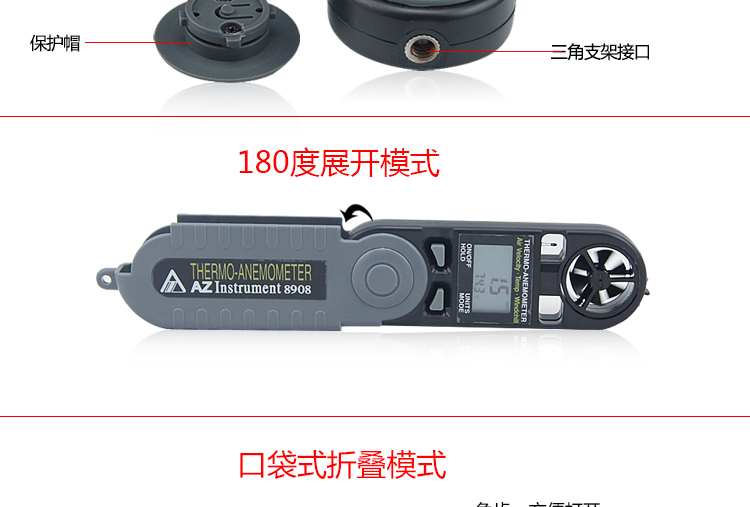 台湾衡欣 AZ8908可折叠式数字风速风量计 高精度风速风温测试仪