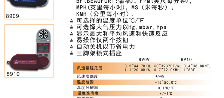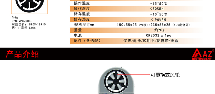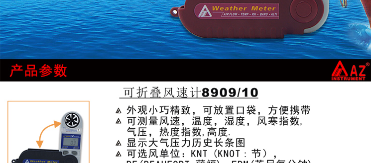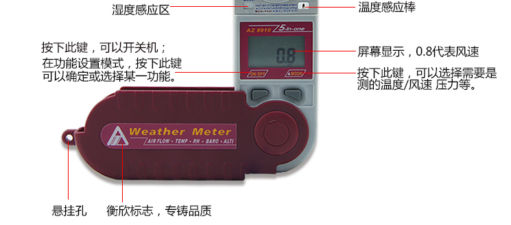 台湾衡欣 AZ8910袖珍型多功能风速仪 数显风速计高精度风速测试仪