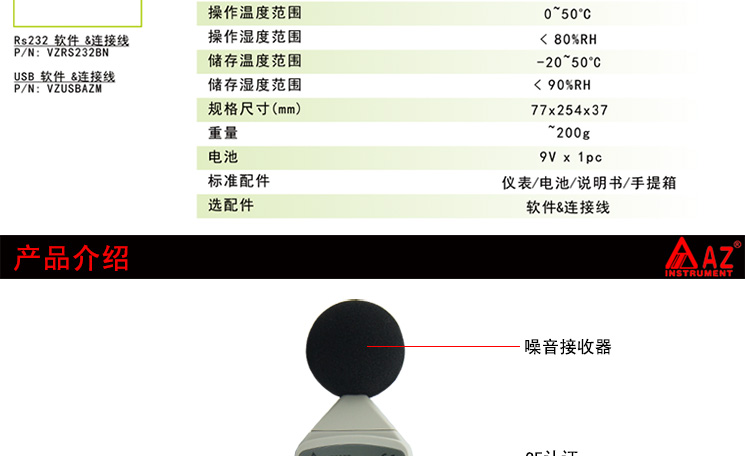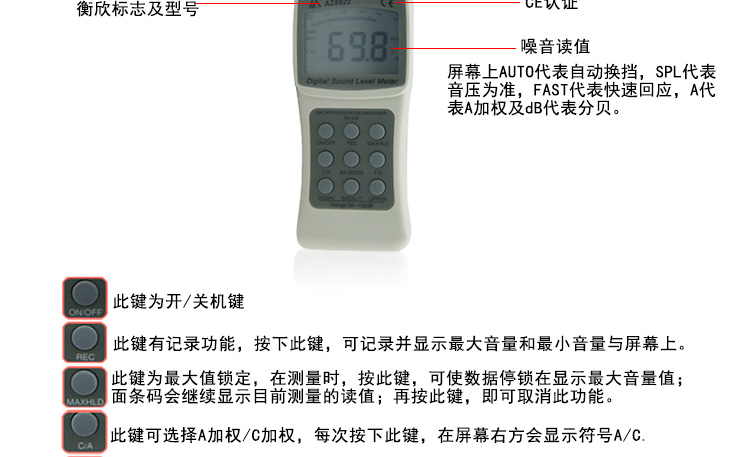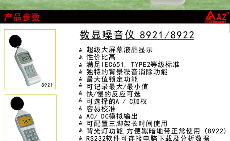 台湾衡欣 AZ8921高精度噪音计 分贝仪 声级计 噪声测试音量检测仪