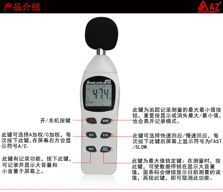 衡欣便携式噪音计 声级计 音量分贝仪环境高精度噪音测试仪AZ8925