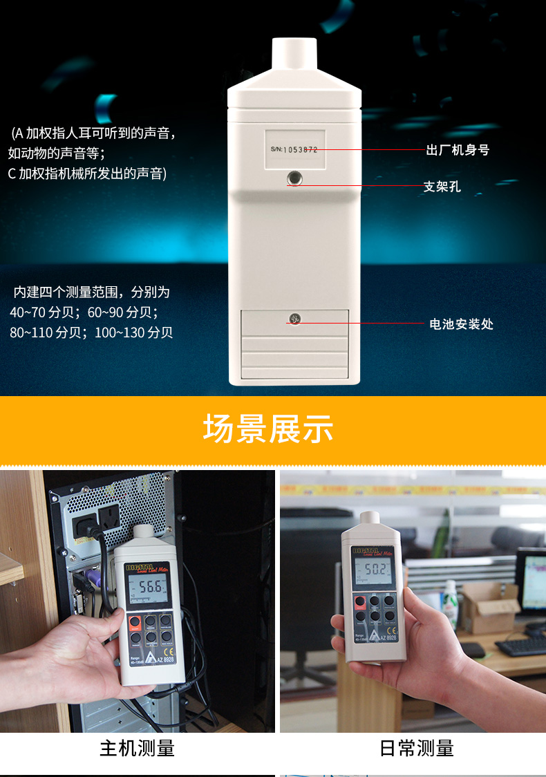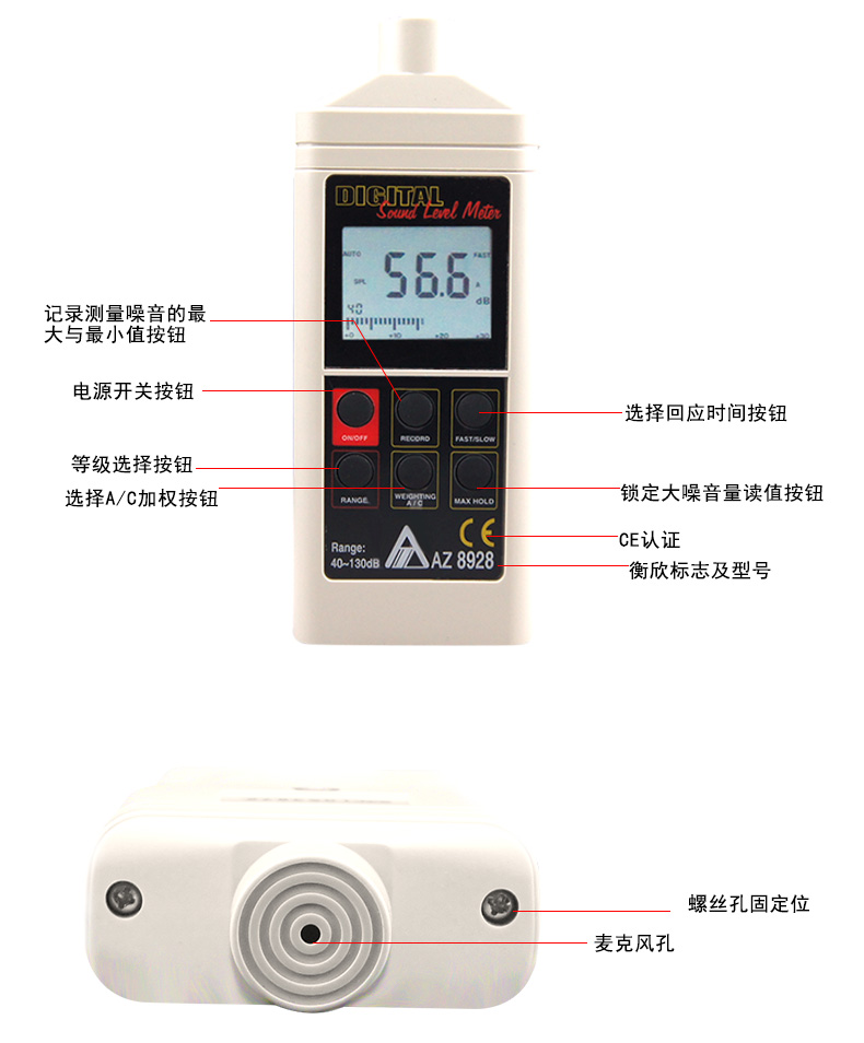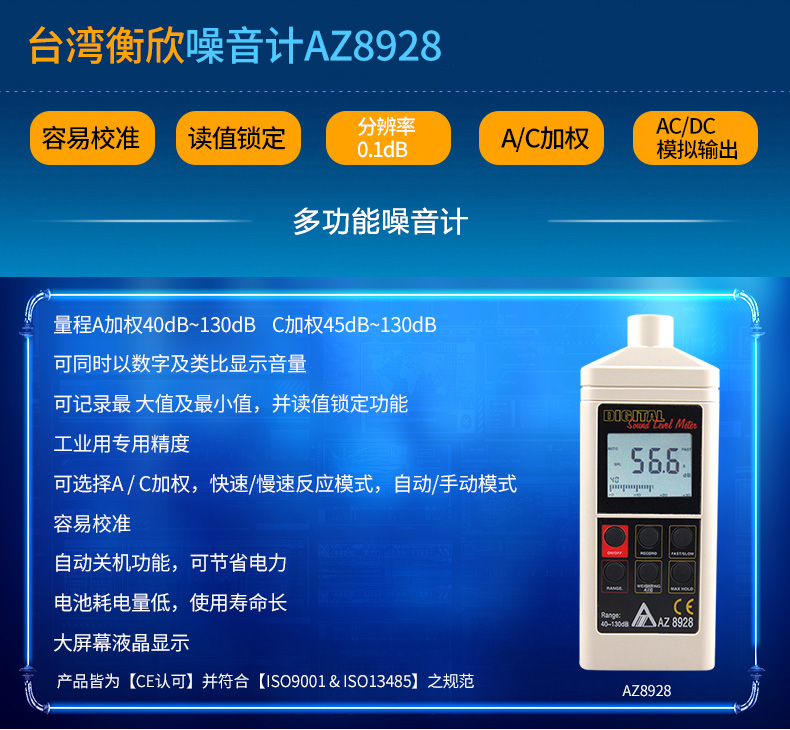 台湾衡欣 AZ8928噪音仪 噪音计声级计检测仪 分贝仪 声级计测试仪