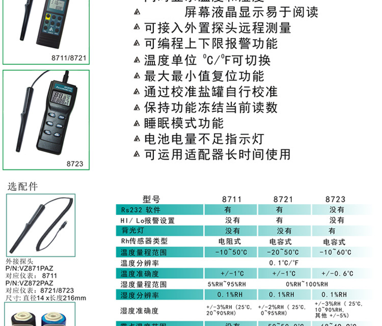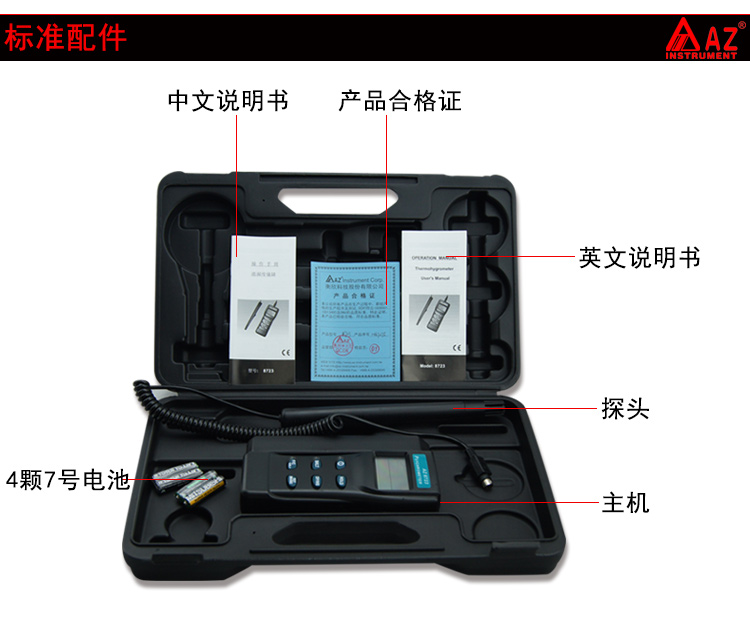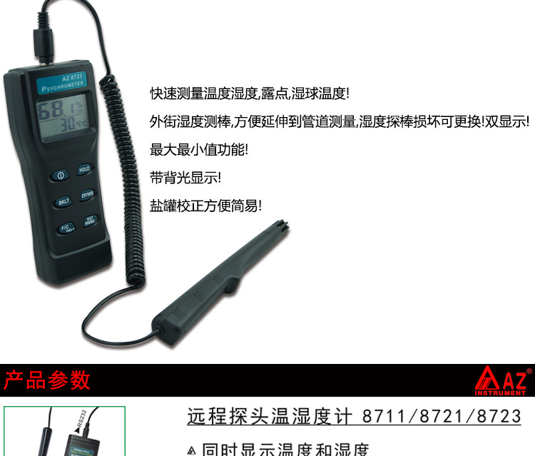 衡欣工业高精度温湿度计湿球露点温度湿球温度测试仪带探头AZ8723